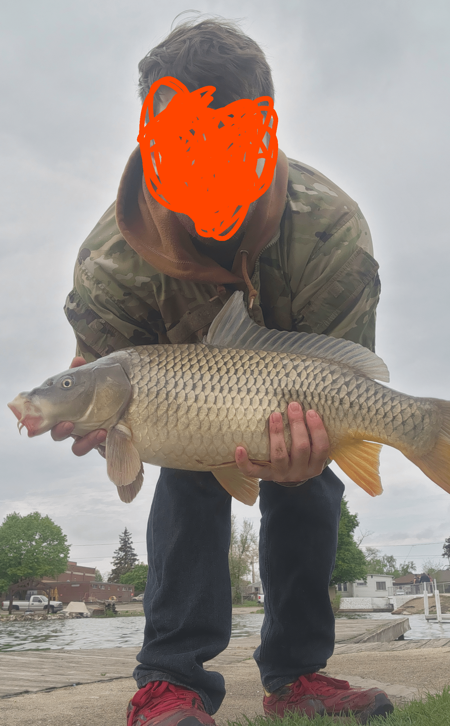 Got my first (official) carp of the year. I had one before it but lost it right at the dock. Before I get any hate my landing net and mat are in the mail, I just couldn't wait to get out. I'm not sure how much it weighs so any guesses are appreciated!