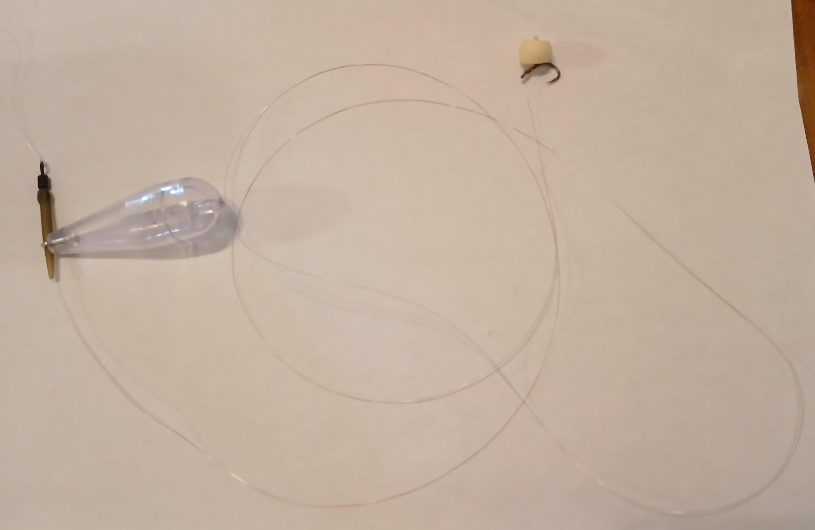 I have to order any carp specific gear so I'm just using what I have already. This is for a small pole I'm dedicating to stalking/surface fishing- 8lb mono mainline, swivel, anti snag sleeve, 12lb zig line, clear trout bobber, size 8 hook, pop up on hair rig. I chose the white pop up to match the bread I'll be using for now. If this works ill eventually order some carp specific stuff and improve the rig. Looking for something similar to dog buscuits here in the US for next try.