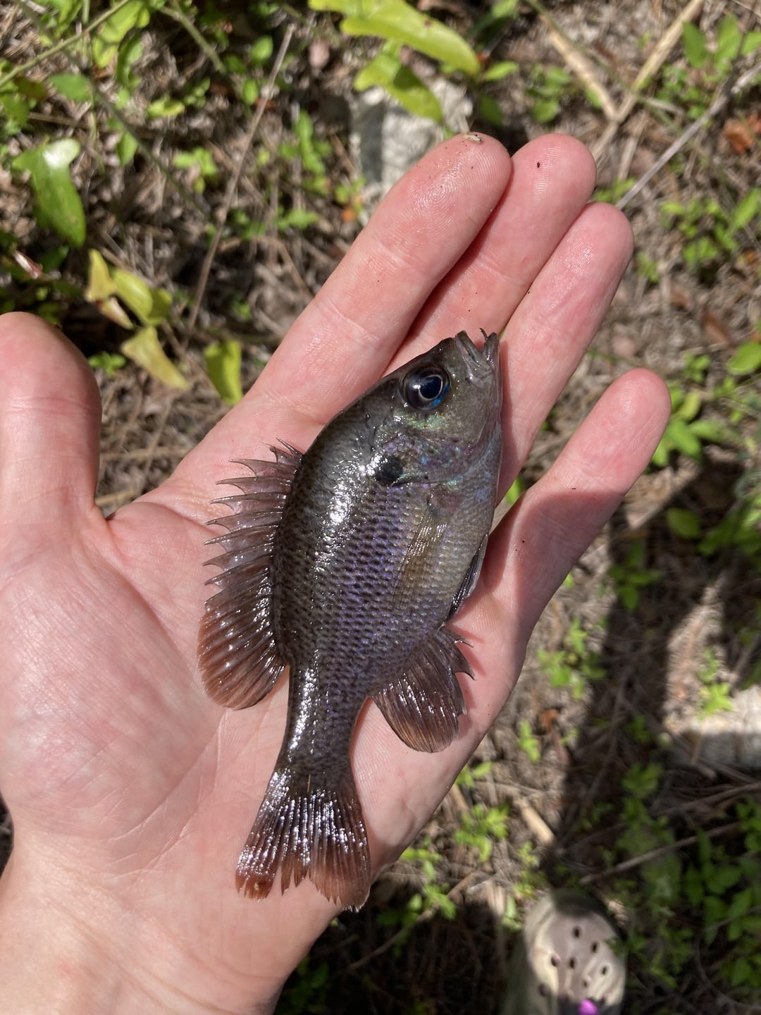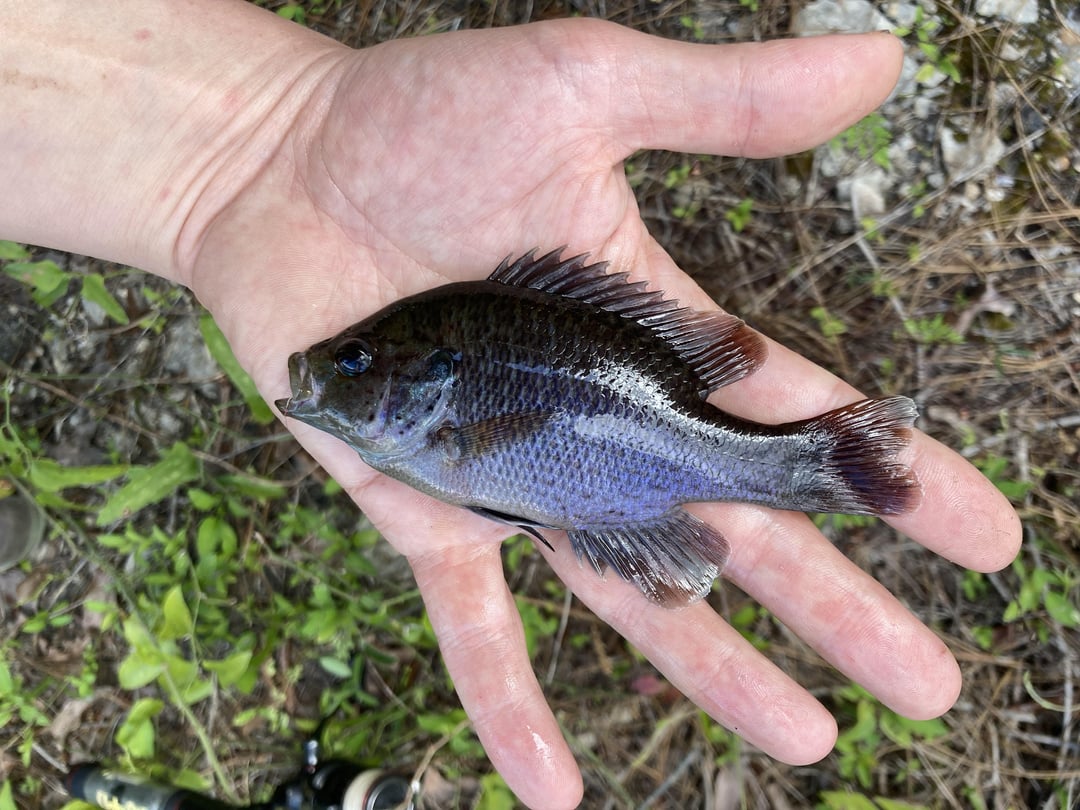 Caught these beautiful purple sunfish in Tates Hell FL under a bride in a fly infested swamp. I think they are spotted sunfish because of the blue eye. About 2.5 and 5 inch https://www.dnr.sc.gov/fish/species/spottedsunfish.html#:~:text=Spotted%20sunfish%20(Lepomis%20punctatus)%20%2D%20Native&text=The%20operculum%20lobe%20is%20black,the%20roof%20of%20the%20mouth.