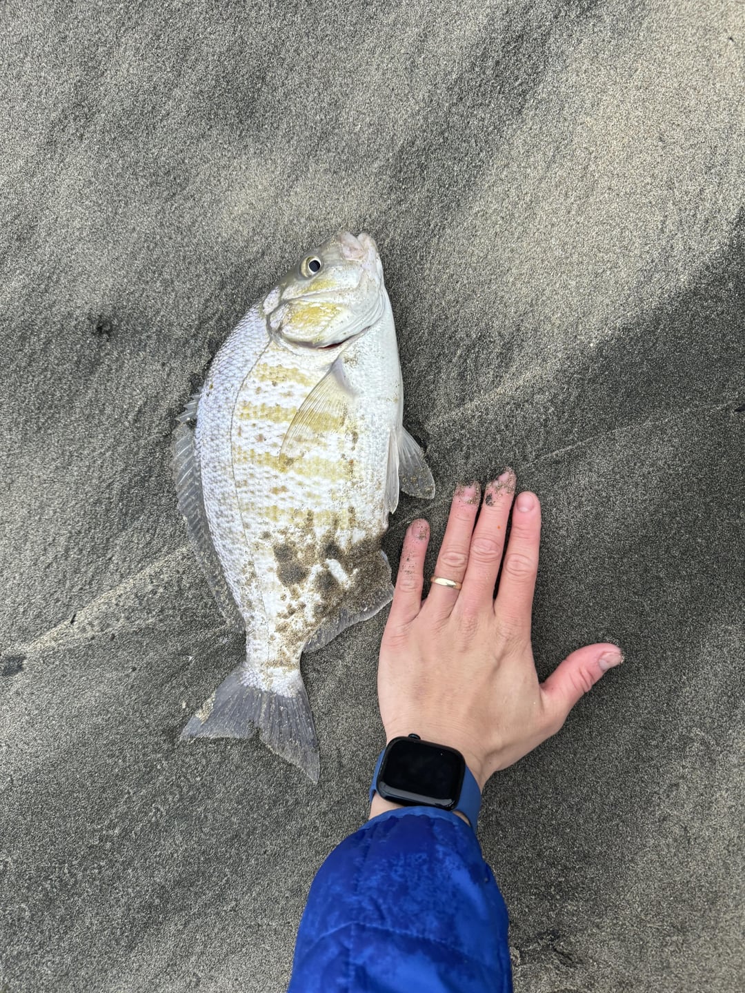 Caught on 1 oz Carolina w/ #4 bait holder hook and sand crabs