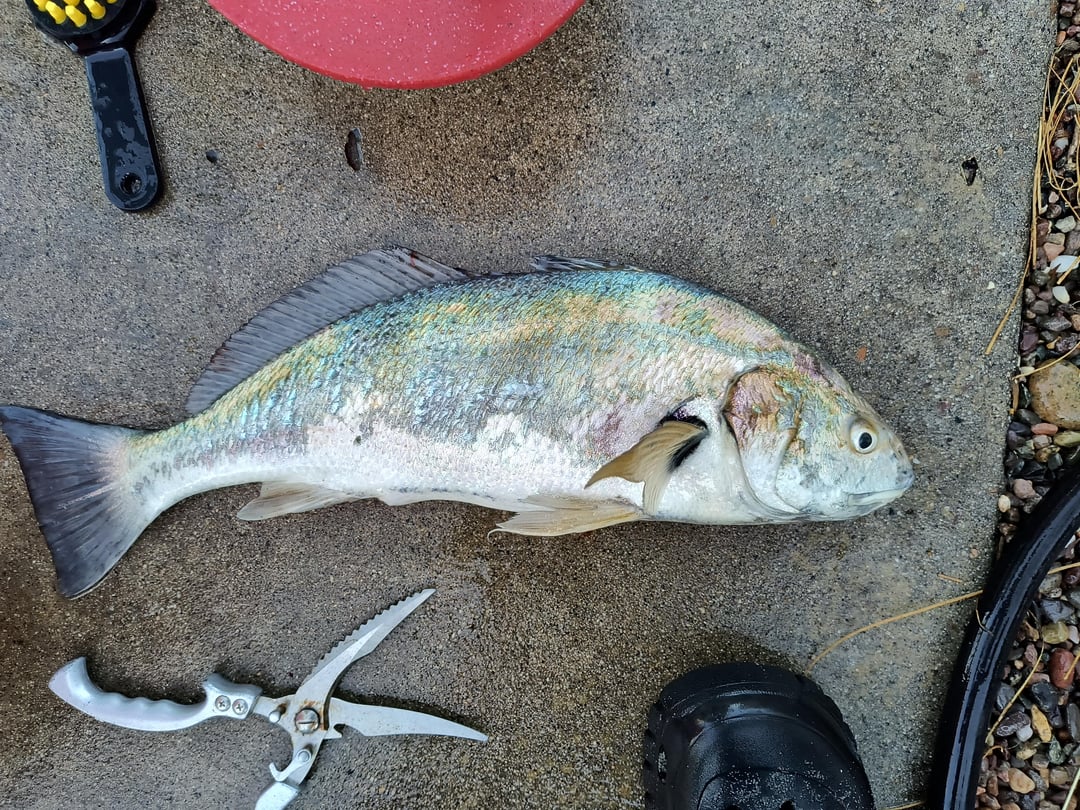 On topic pic, got a pretty spot fin croaker from a jetty using sand flea. It's also dinner.