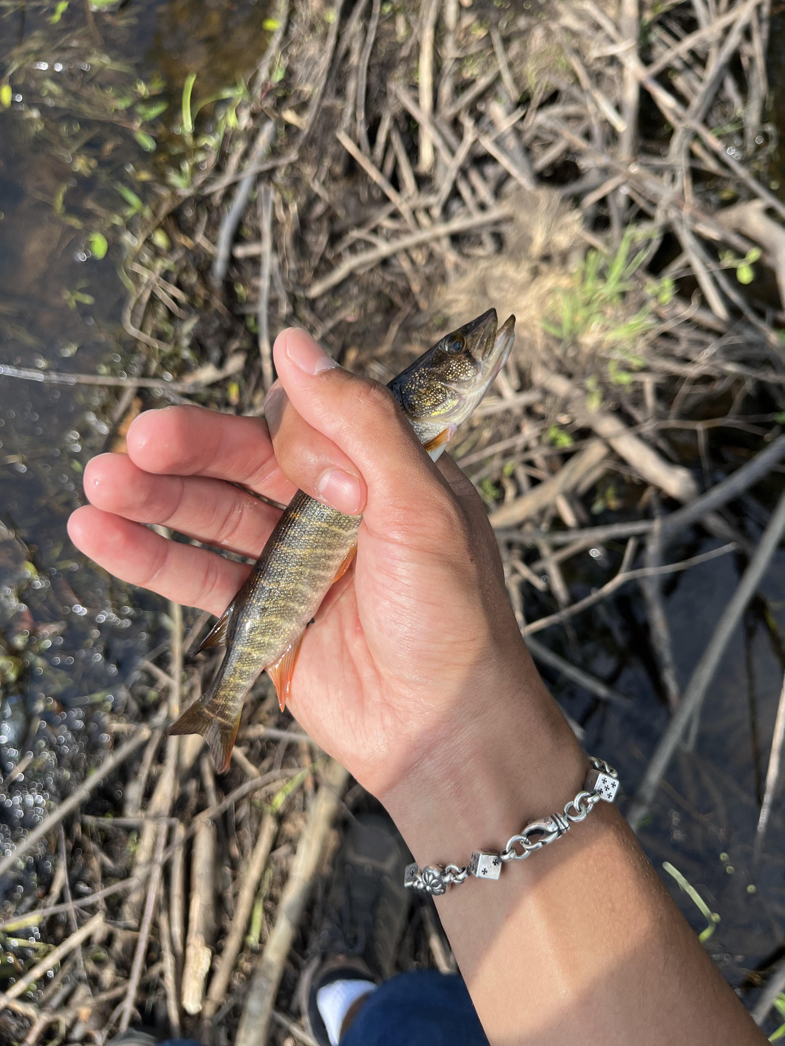 1. Not sure where you are located but I think that’s a baby pike. Pickerels have more of a chained pattern typically I could be wrong.
