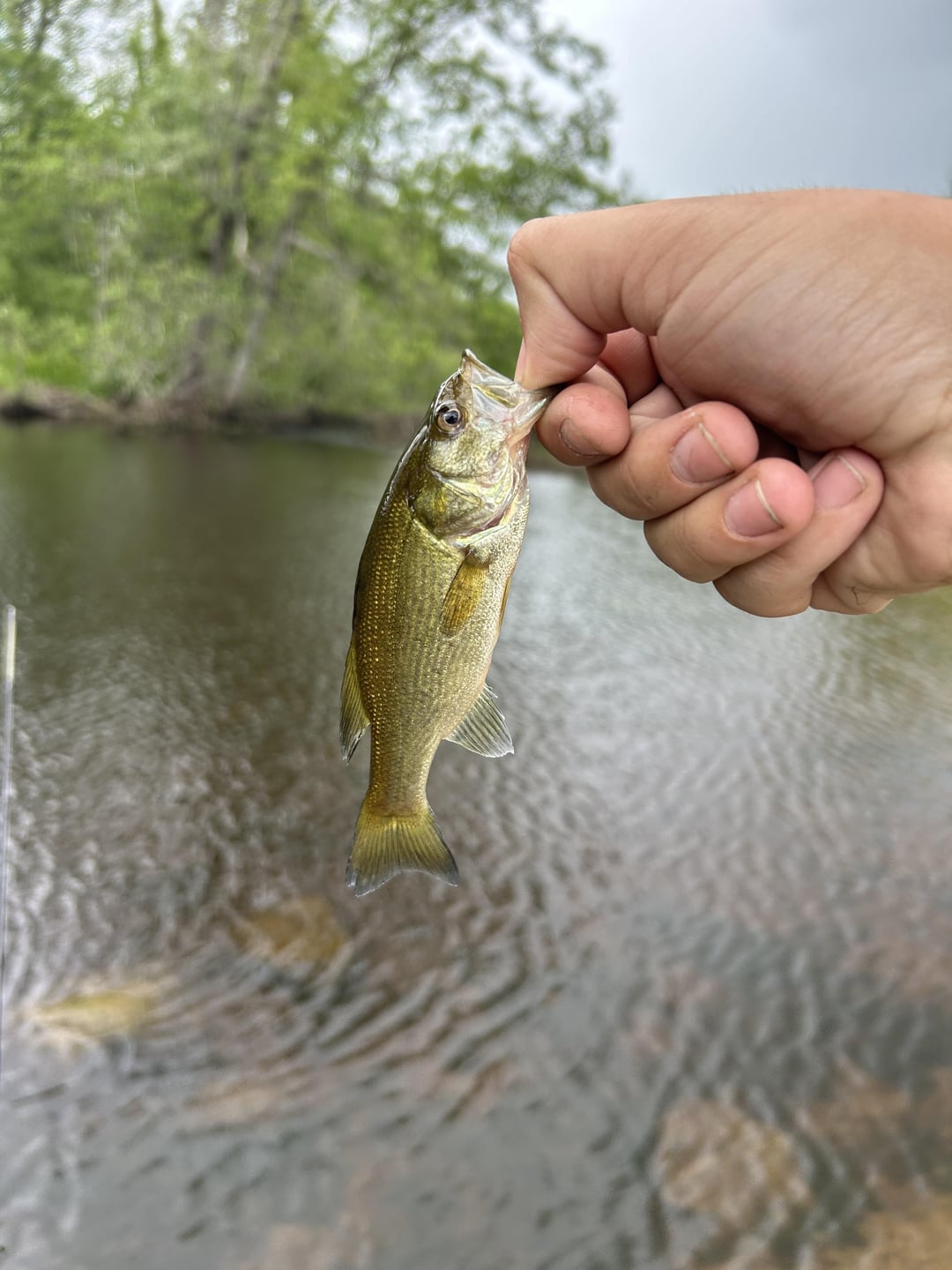 got both these bass on a rooster tail in the same day, seem to be between 3-4 inches. i’m not sure of specific type of largemouth tho Posted by ruffee_