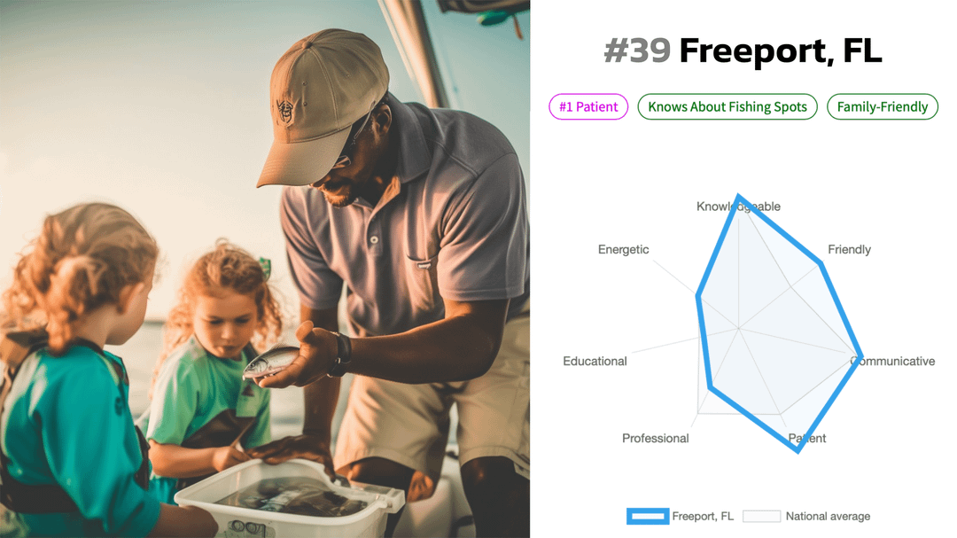 **About:** This study analyzed 20K angler reviews from 74 cities in 16 states across the United States to determine the traits anglers value most in their captains. Considering anglers spend nearly the entire day with the captains on the water, the focus is on the essential aspects of captains’ personalities and skills.