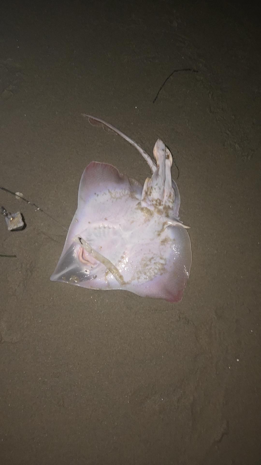 First time out surf fishing. Went out around 1am. Tried fish bites. Tried shrimp. Tried sand fleas. Finally tried squid and got my first skate. Tomorrow I expect to go around a better time with better conditions and hopefully I'll catch someone to call home about