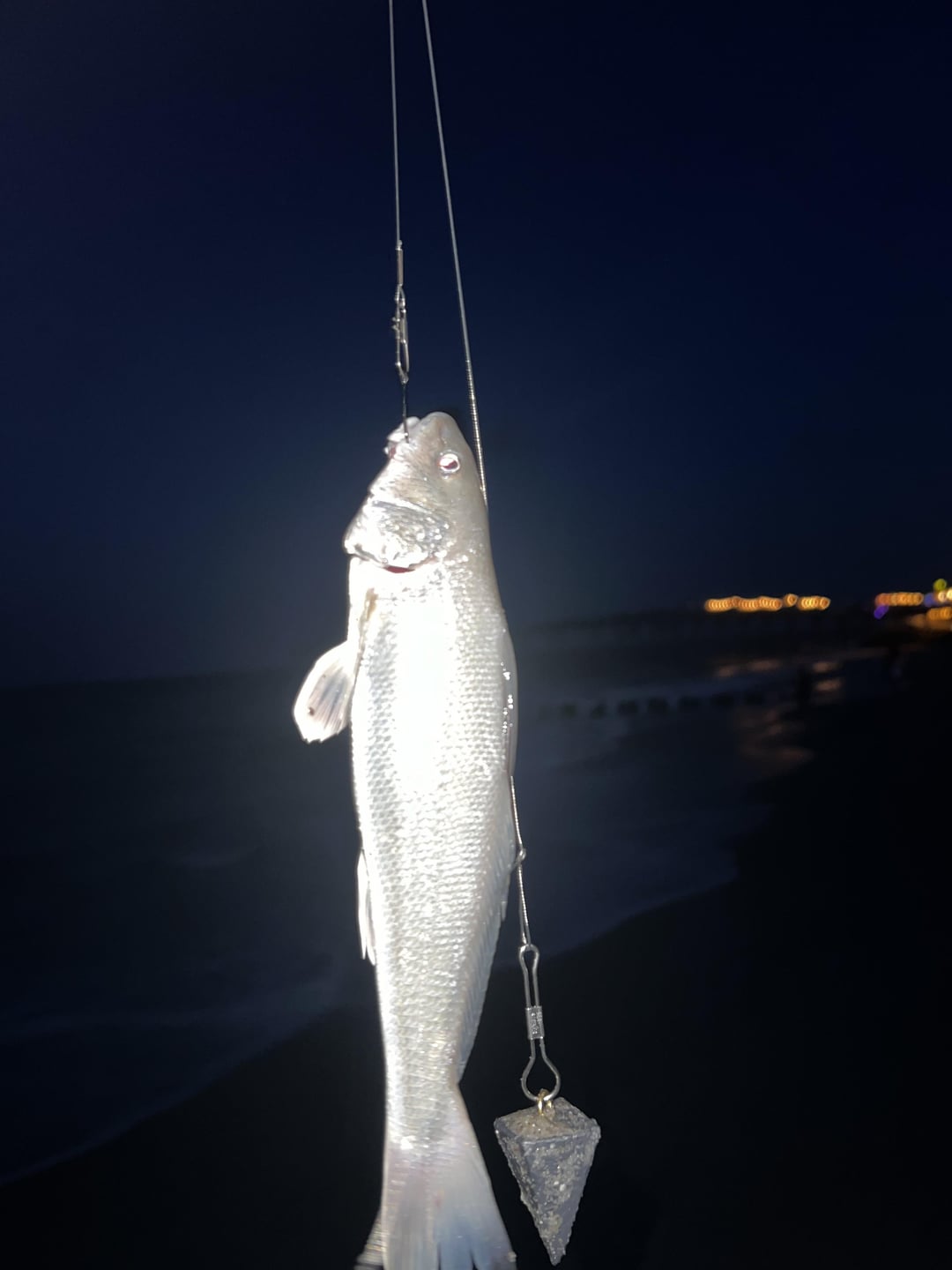 Caught from the beach near entrance of Freeman Park in North Carolina. Near Carolina Beach Pier. Not sure what fish it is but would love to know purely for my education. Caught with shrimp on a hi lo rig.