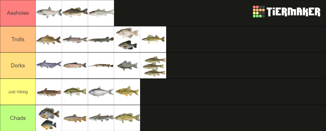 Bored at work, so here’s a a “tier list” based on the vibes the local fish species give me