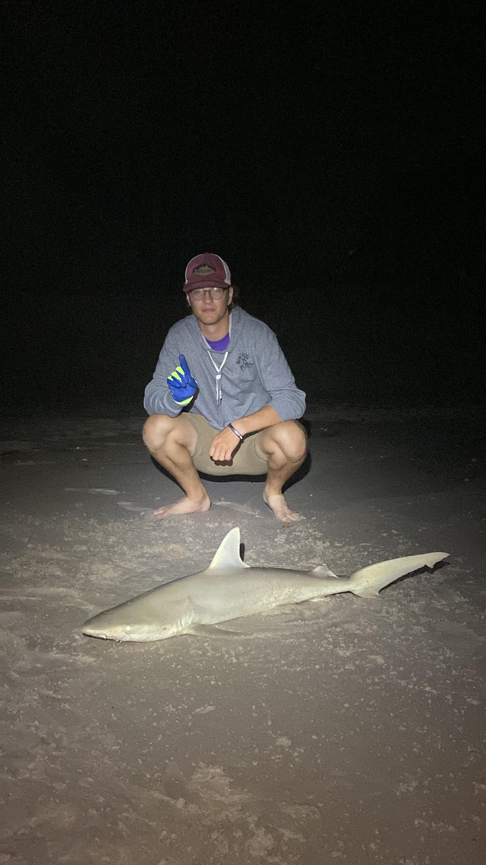 (Other than dogfish, that is). ~2.5 foot spinner shark caught on a cut piece of fresh croaker, eagle claw shark rig, 100lb mono shock leader and 80lb braid. Penn Fierce III 9’ combo. North Topsail Beach, NC