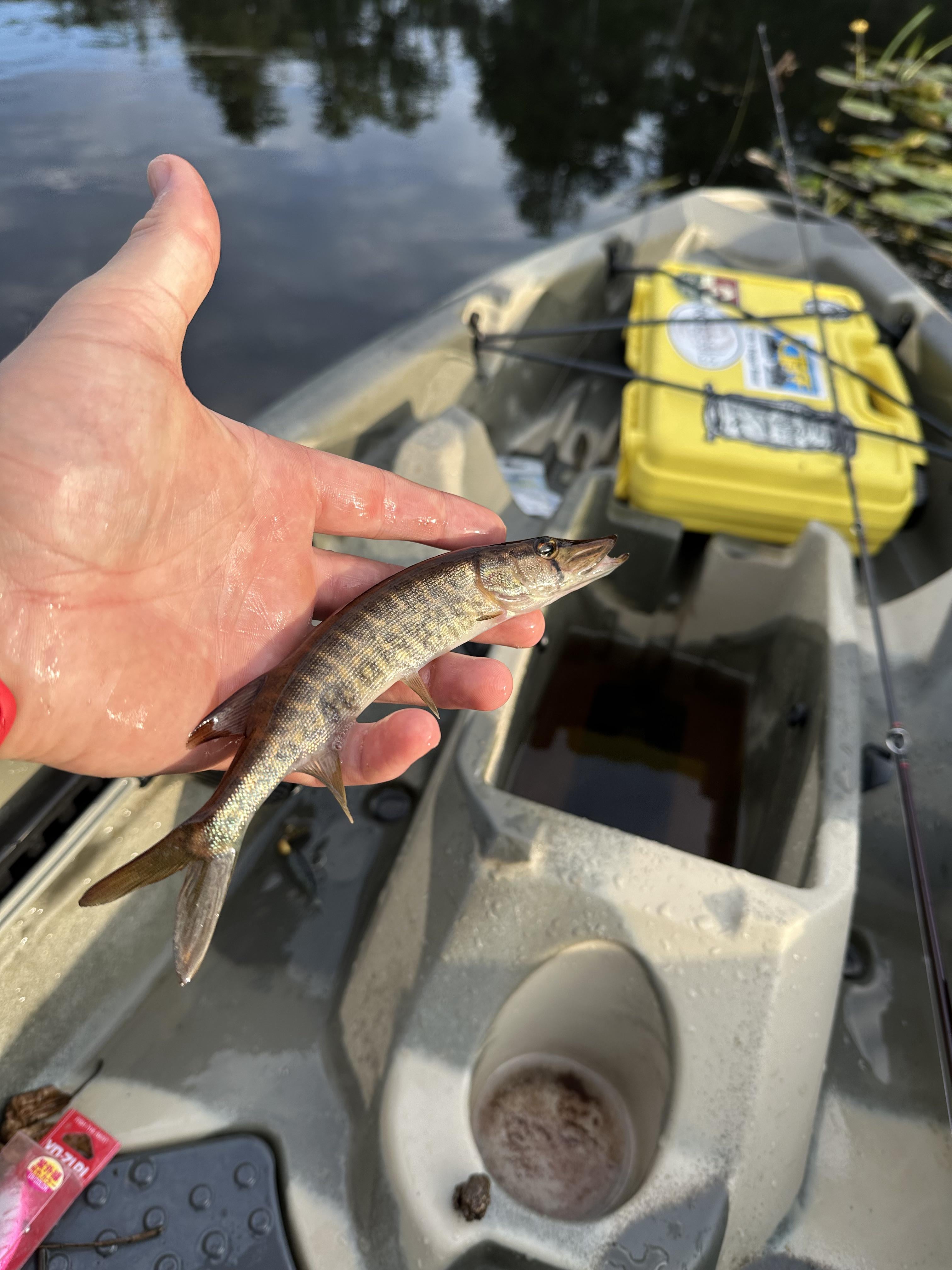 Chain pickerel. They can get a red flush to the fin when they’re overly stressed. I get more redfins around the black water pine barrens, even though they’re supposed to favor clear water!