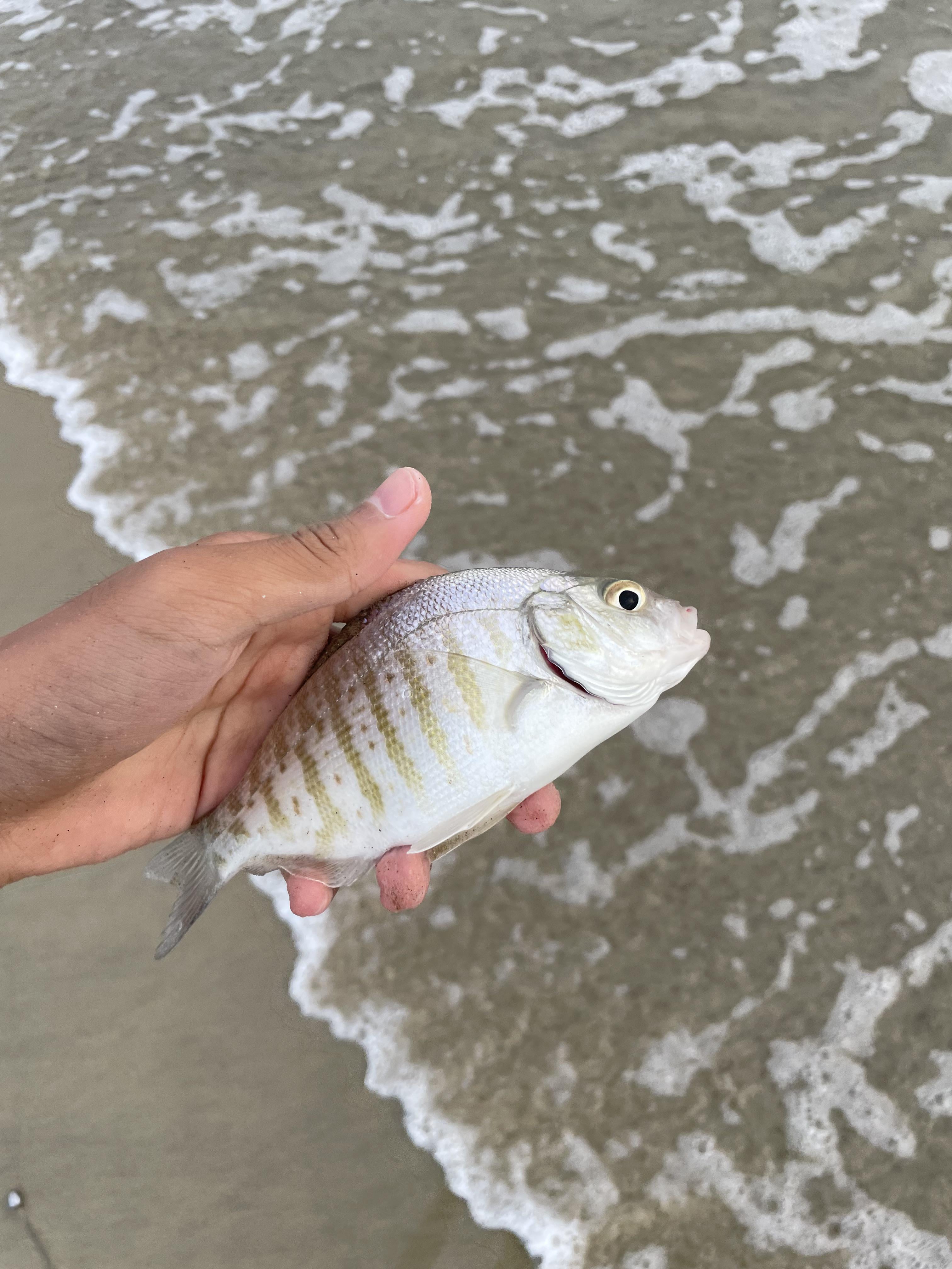 Caught 4 yellowfin croakers here in San Diego this morning. Weird how there isn’t a sand flea to be found. Had to use mussels