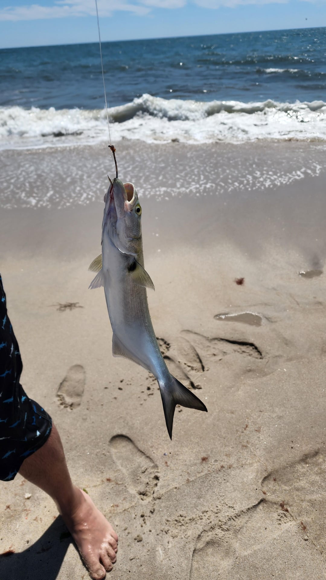 Other than a lot of seaweed, it was the perfect temp for fishing today at Jones Beach. Caught a flounder, spot, sand shark, and a bluefish on high low rig with a combination of shrimp, clam and bunker.