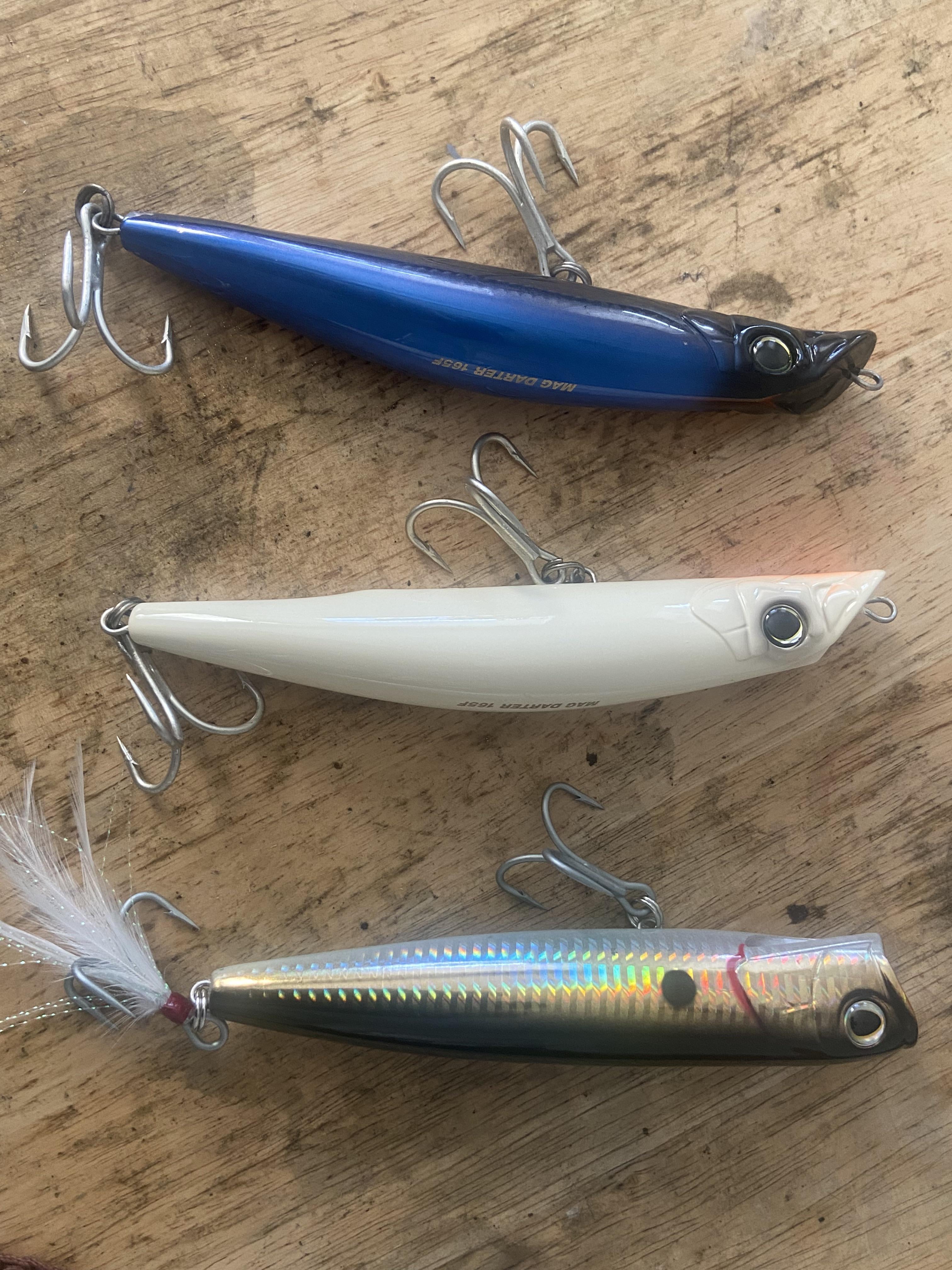 My question is, are these lures appropriate to catch something larger than baby blue fish? Is there a preference between locations?