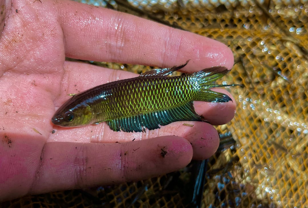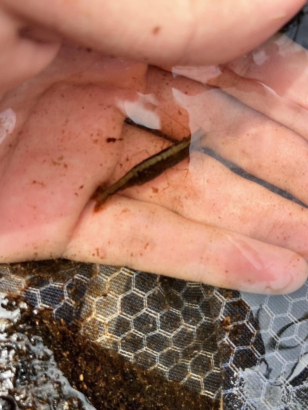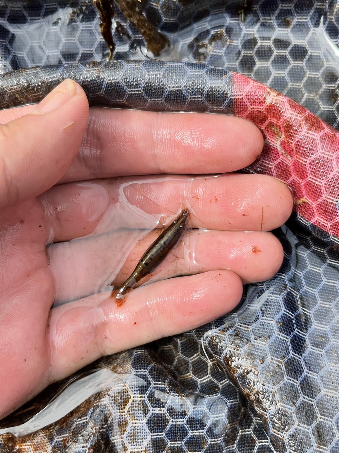 A 3” shiny green fish and a shrimp I caught in a ditch