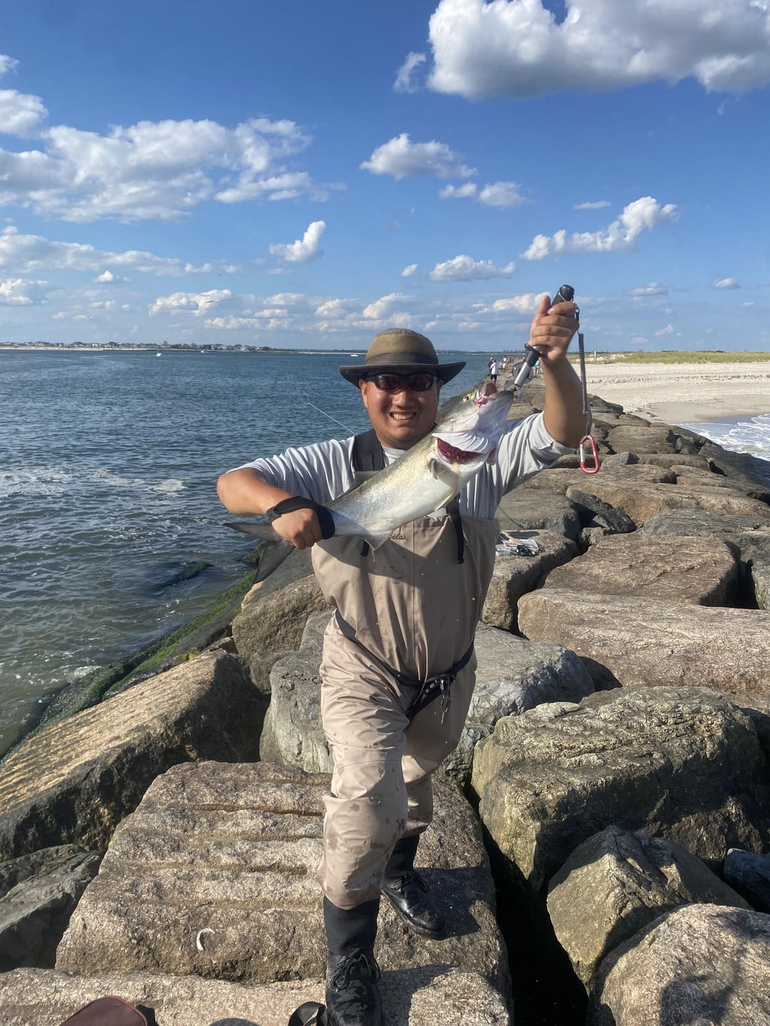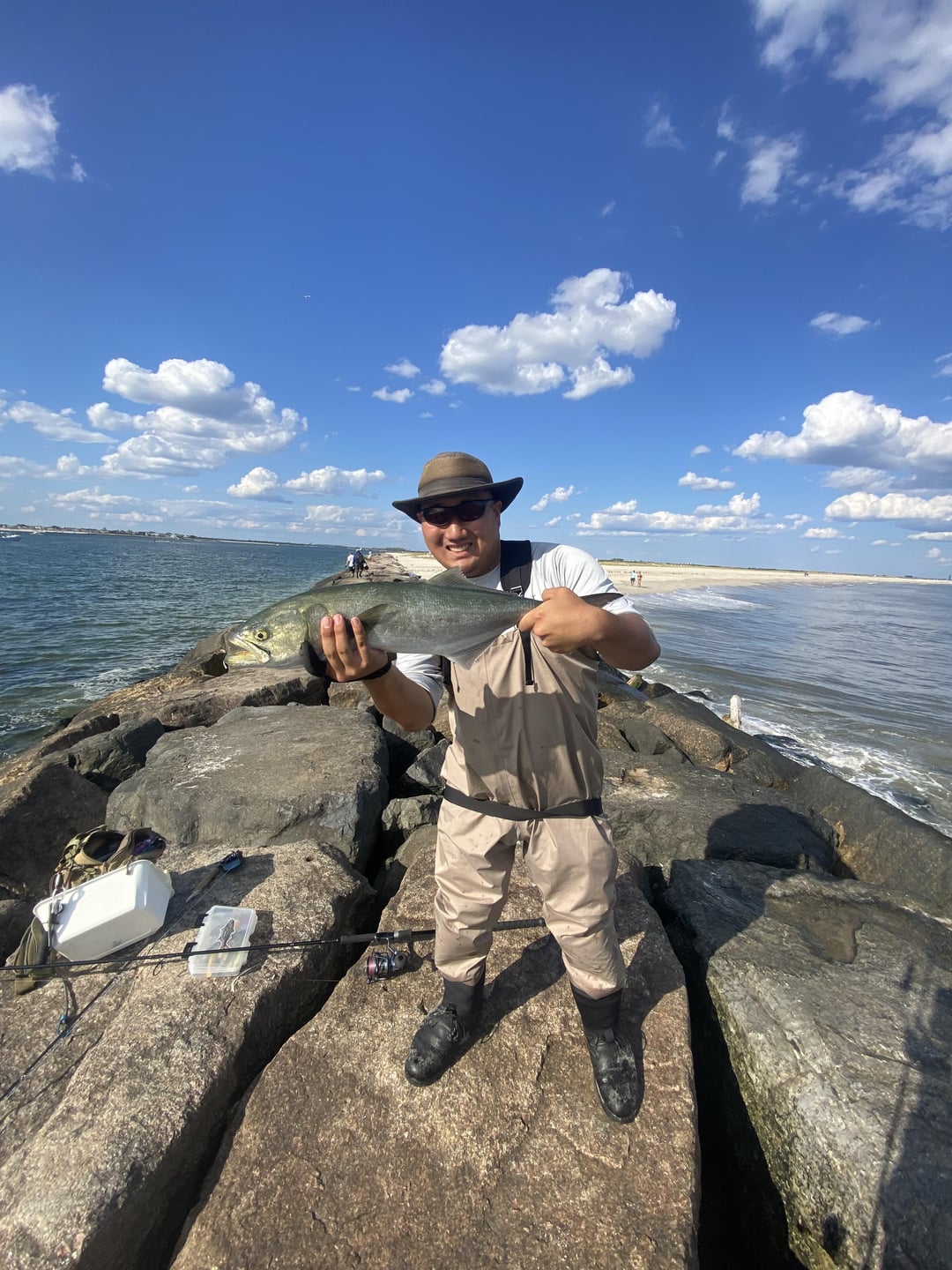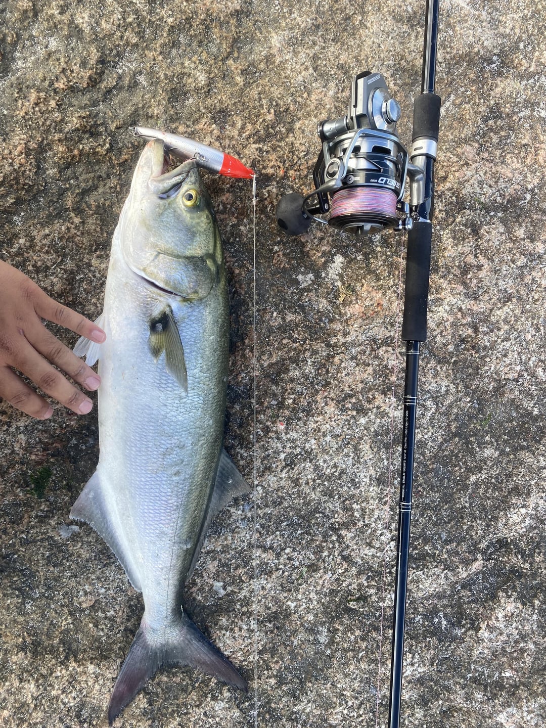 Caught 6 bluefish and got photos of two of them in the span of an hour and a half. It was a lot of fun. I need to buy heavier leader material though. Posted by bronzebackbass1