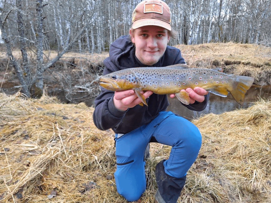 I am kinda new to flyfishing and have only done it for like a bit over a year, and as of what I have found it seems not that hard. I have heard that a lot of people see flyfishing as a very hard and fancy sport but to be honest I haven't spent much money on it and it just seems over exaggerated. It however seems very needy so to say, it just needs the perfect conditions or else everything goes to hell. Yes I know that you still can flyfish with really harsh wind and a bunch of trees and busches around and I have fished in such conditions. To be honest I just prefer spinnfishing because it is just less finicky but this fish here is my biggest brown trout and I caught it this spring on a brown streamer.