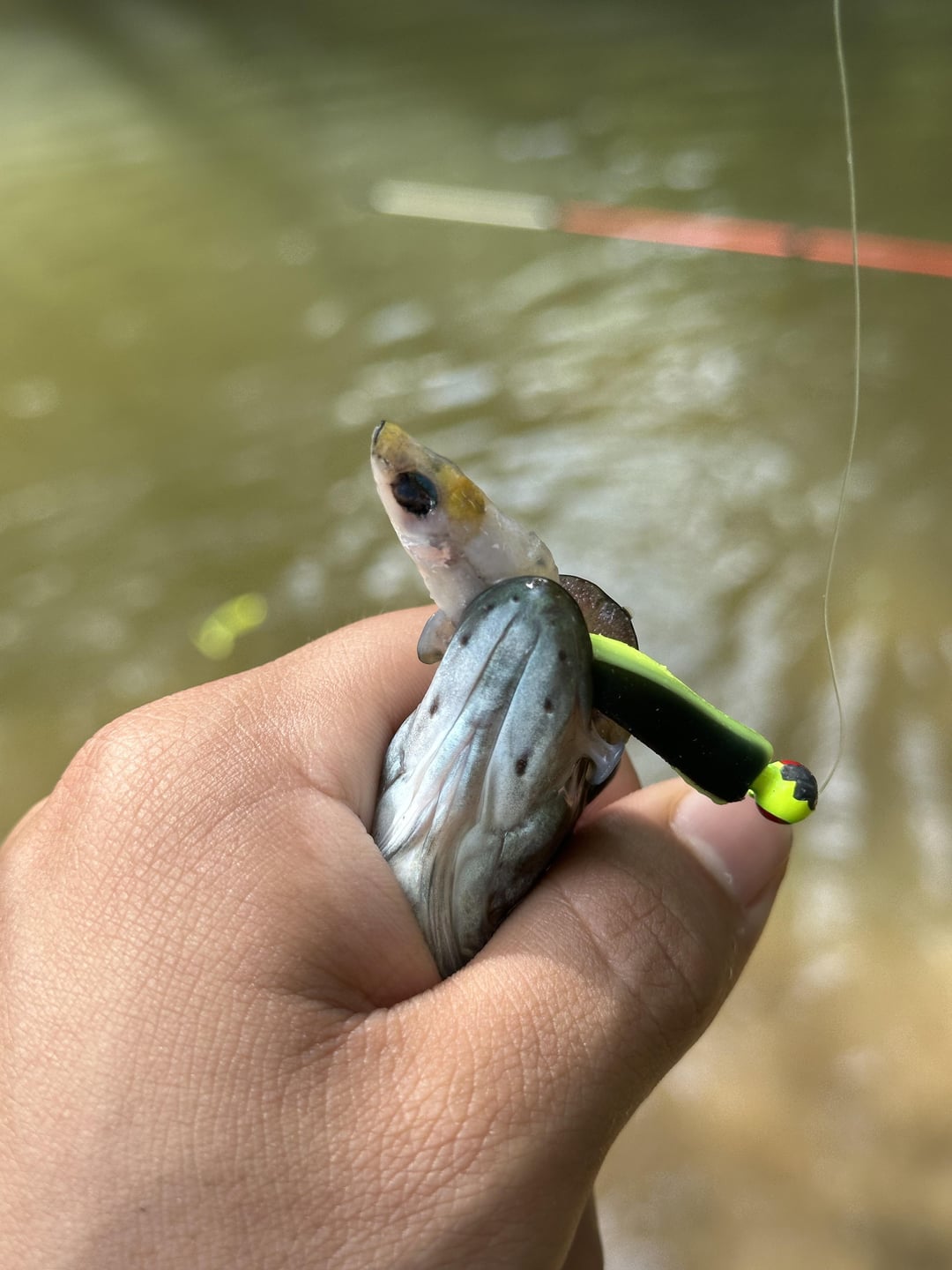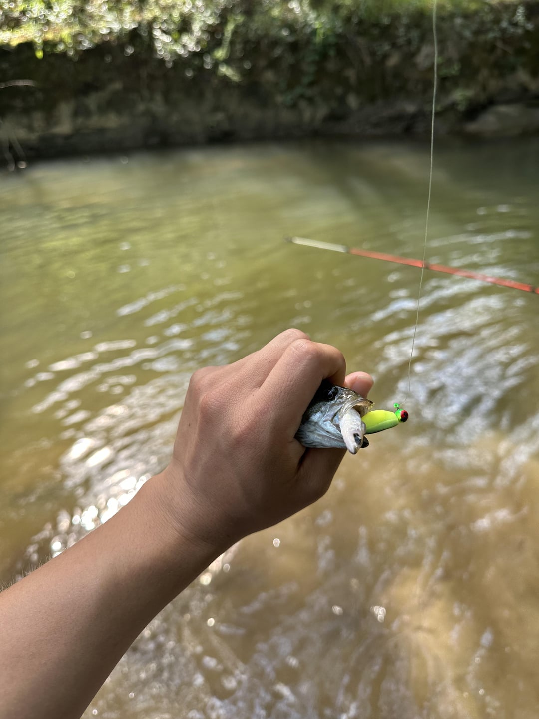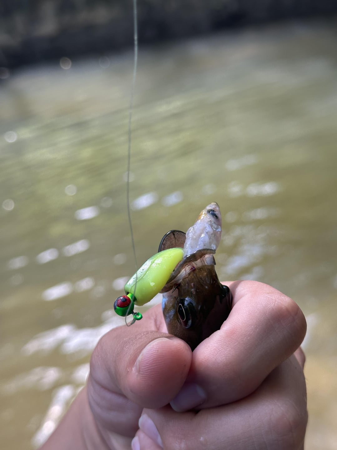 Caught this baby smallmouth with a dissolved minnow in its mouth!