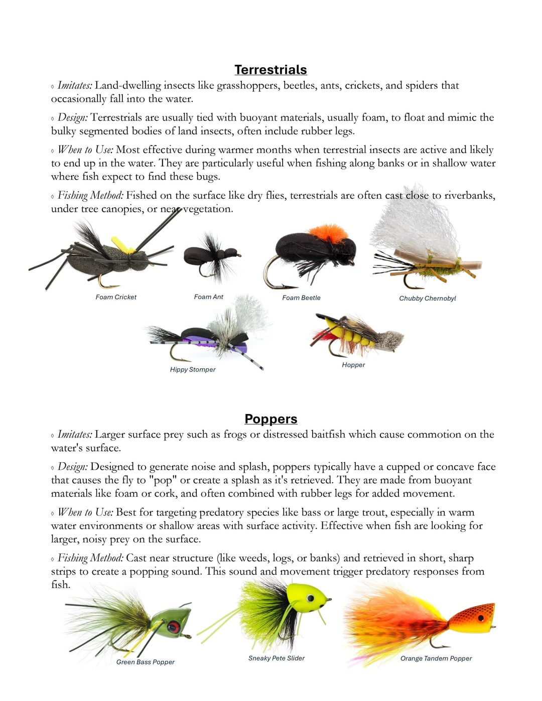 [UPDATED] Beginner’s Guide to Flies: (see my comment for link to word and booklet PDF), and remember, I am ALSO a beginner, so if any old-timers have revision suggestions they are more than welcome! It’s a great learning experience for me!