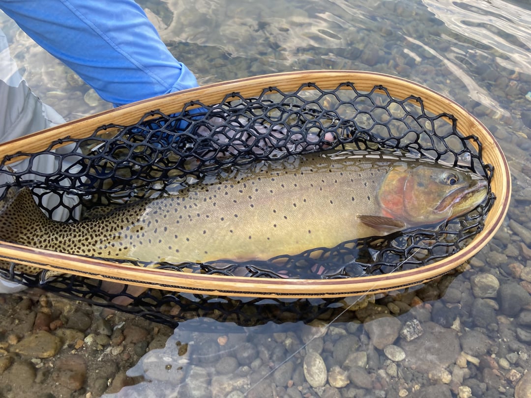Yellowstone cutthroat (caught in YNP). Big old healthy boy who’s clearly been making the most of our extended summer (and grasshopper) season.