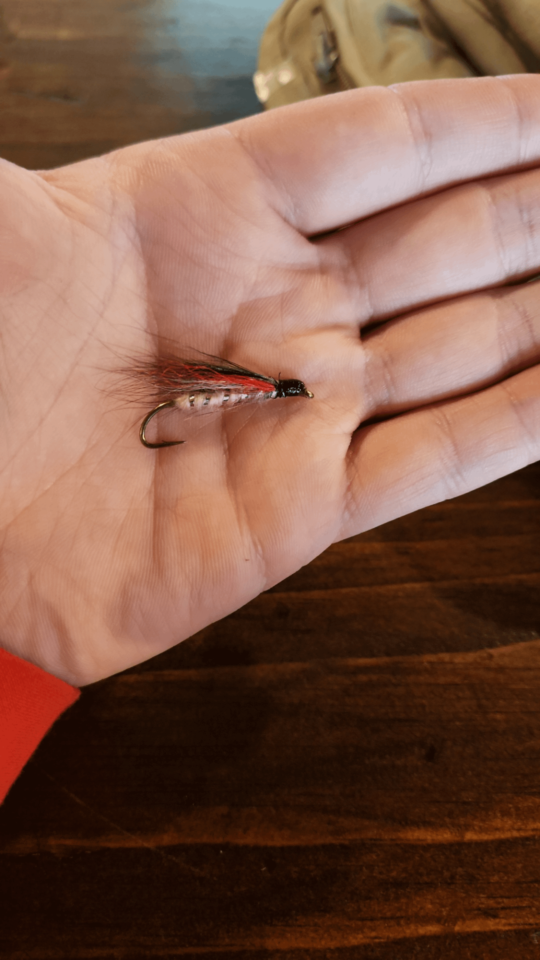 It’s a bucktail streamer but maybe a local variation. Not a pattern that I recognize and frankly not super well tied either….which doesn’t matter if it catches fish! Black over red with a little white underwing. Cream yarn with silver mylar tinsel.