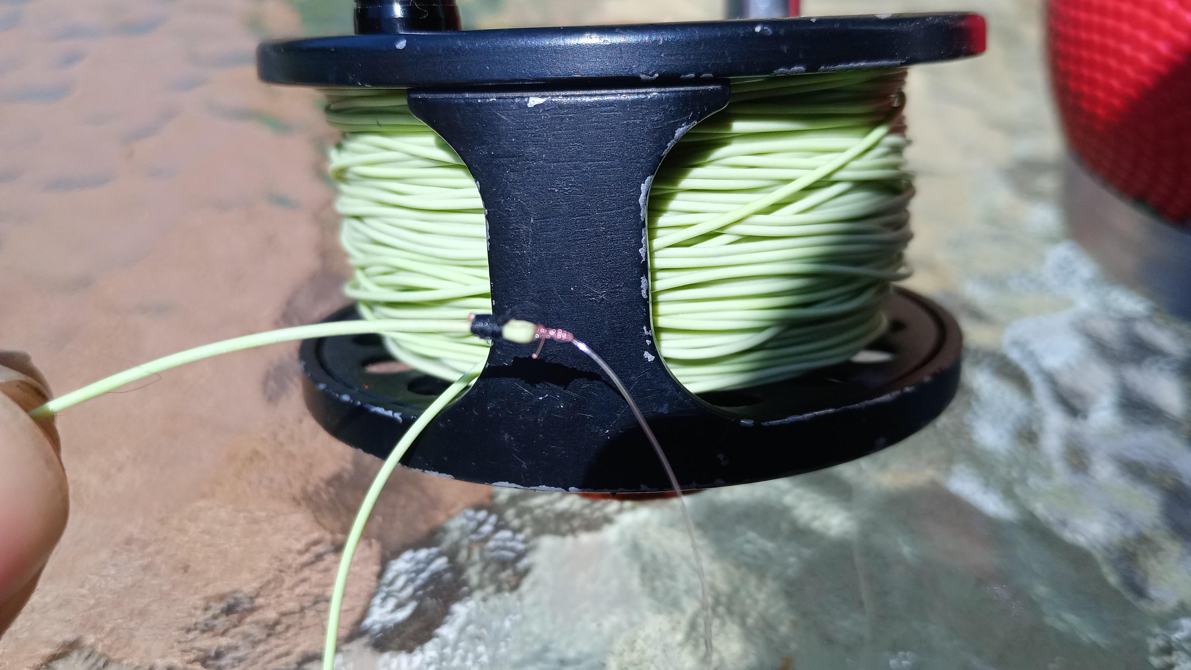 Nymph lines are just a thin level line, wf lines are lines that consist of a shoting head and a running which is a level line. so if i take a wf line and invert it, I got a thin level line. it sounds stupid but i've been testing it and it works very well. The diameter is around 50-52mm and does not weigh down the leader, it runs well through the guides when throwing a single 2mm perdigon.