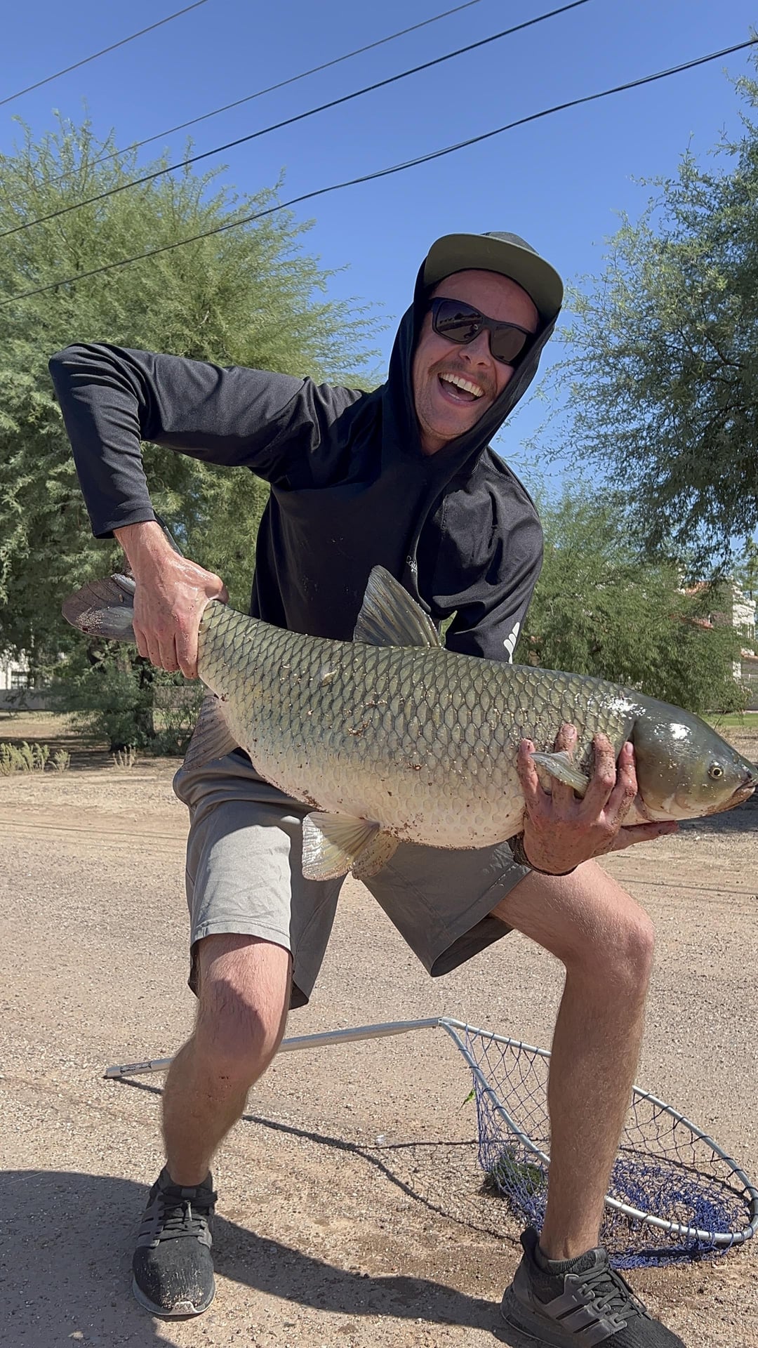 Caught this submarine of a grass carp today on a chartreuse leech (the net in the background use to be straight) Posted by kolin_cile