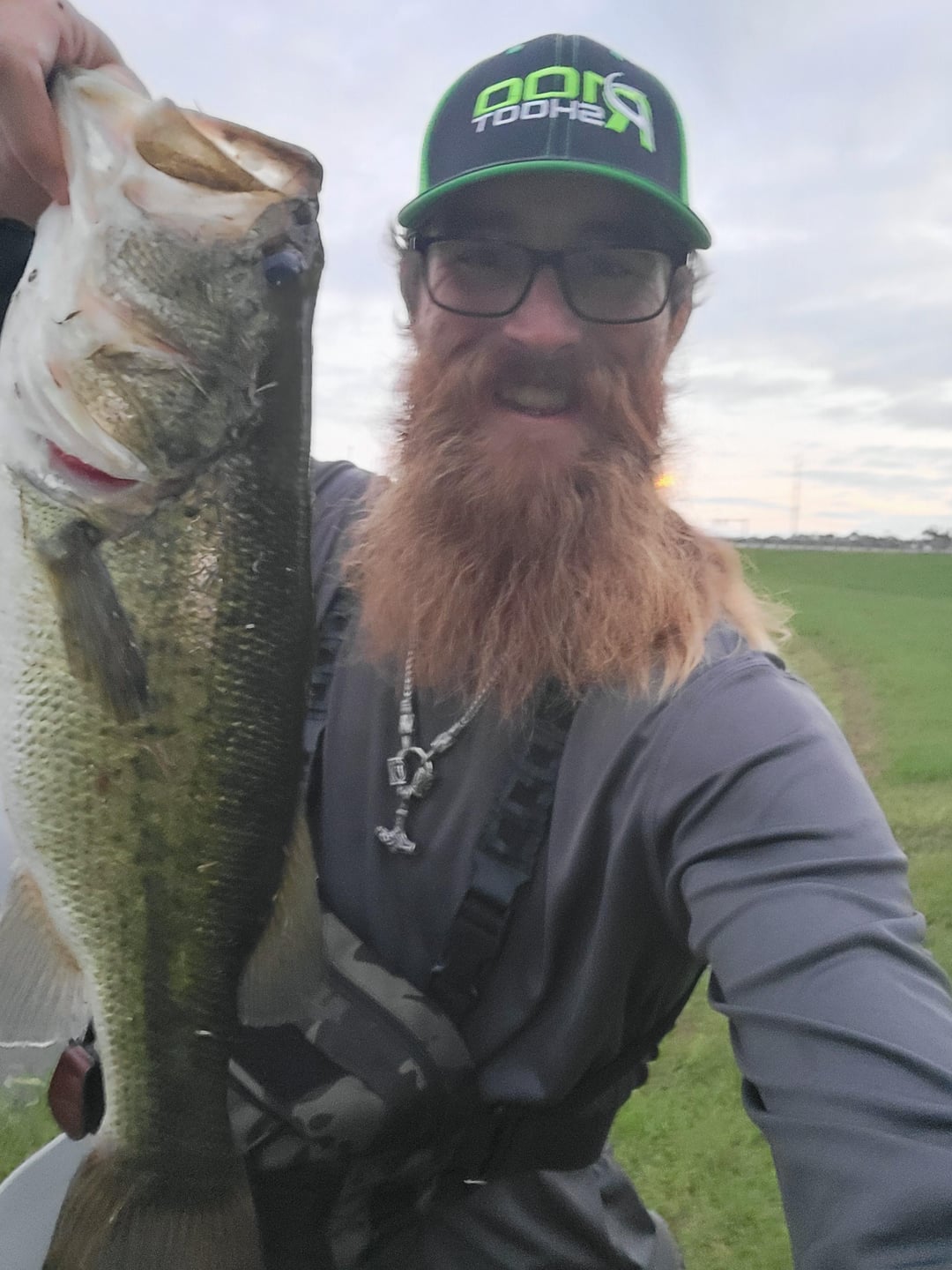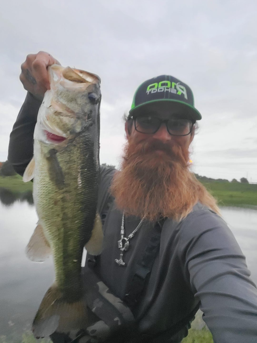 My son and I were fishing in a pond and we kept seeing a bobber moving around the edge of some grass beds. Obviously still hooked in a fish as we were the only people around. I kept fishing to it and trying different flies. Having no idea what kind of fish it was. Five patterns later, I finally got it to eat on a size 10 olive wooly bugger. We were able to quickly remove the fly and the other hook and successfully release this beauty back into the pond.