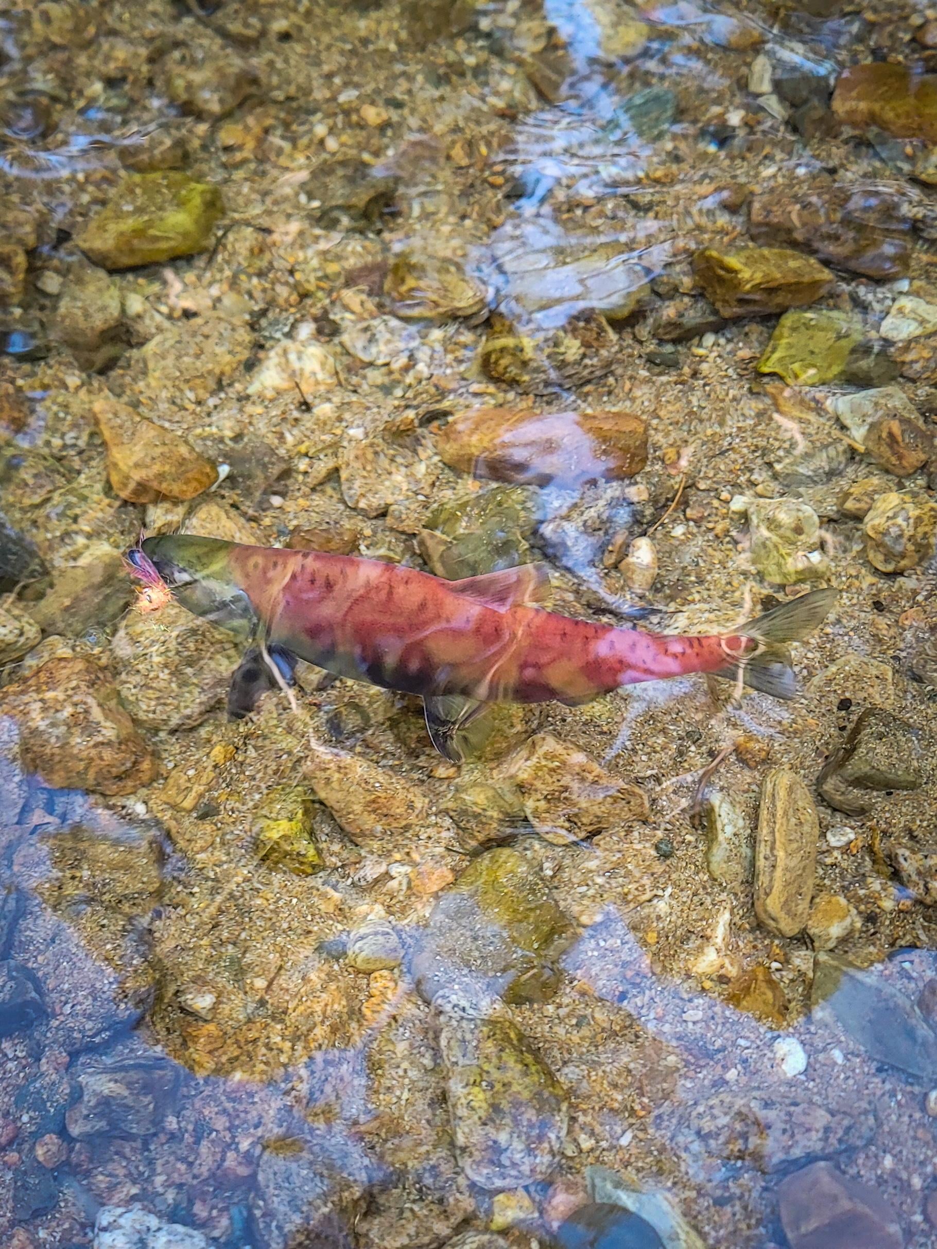 There are a few spots in the Sierra Nevada that hold Kokanee Salmon. Always fun to provoke some aggressive strikes when they are colored up for spawning. Once in awhile you can hook a big brown or rainbow hoping to poach their eggs.