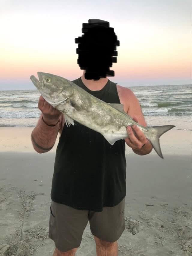 Storms created ~50m sandbar. Waded out with a high-low consisting of a mullet head and chunk mullet and made a cast out to around 125m. Not long after making it back to shore, had this guy on the line. Measured to be just shy of 23inches. Probably one of my proudest moments surf fishing!