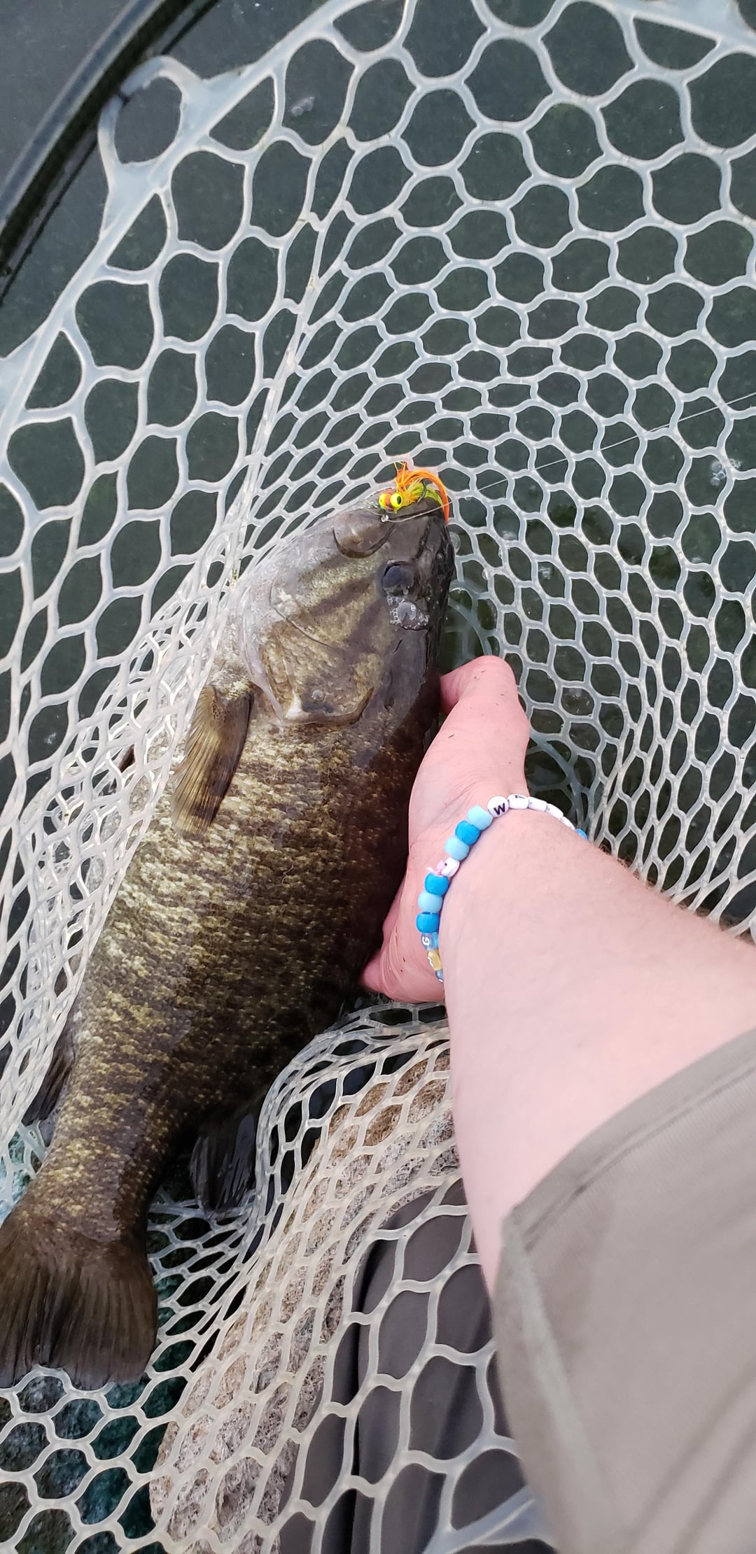 24″ walleye on a clouser I tied this week, bonus smallmouth