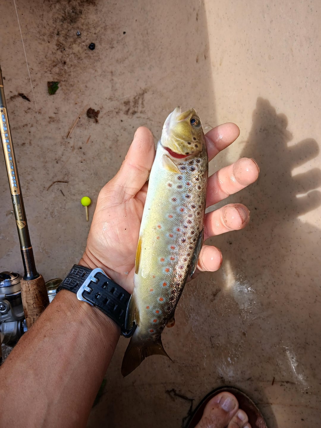 For future reference, don’t lip trout… hold them by their bellies (and don’t squeeze… they’re not into that kinky stuff). They’re small ones and probably not as hard on them to do that, but their jaws easily dislocate. They’re a delicate fish especially compared to bass, so wouldn’t hurt reading up on trout handling.