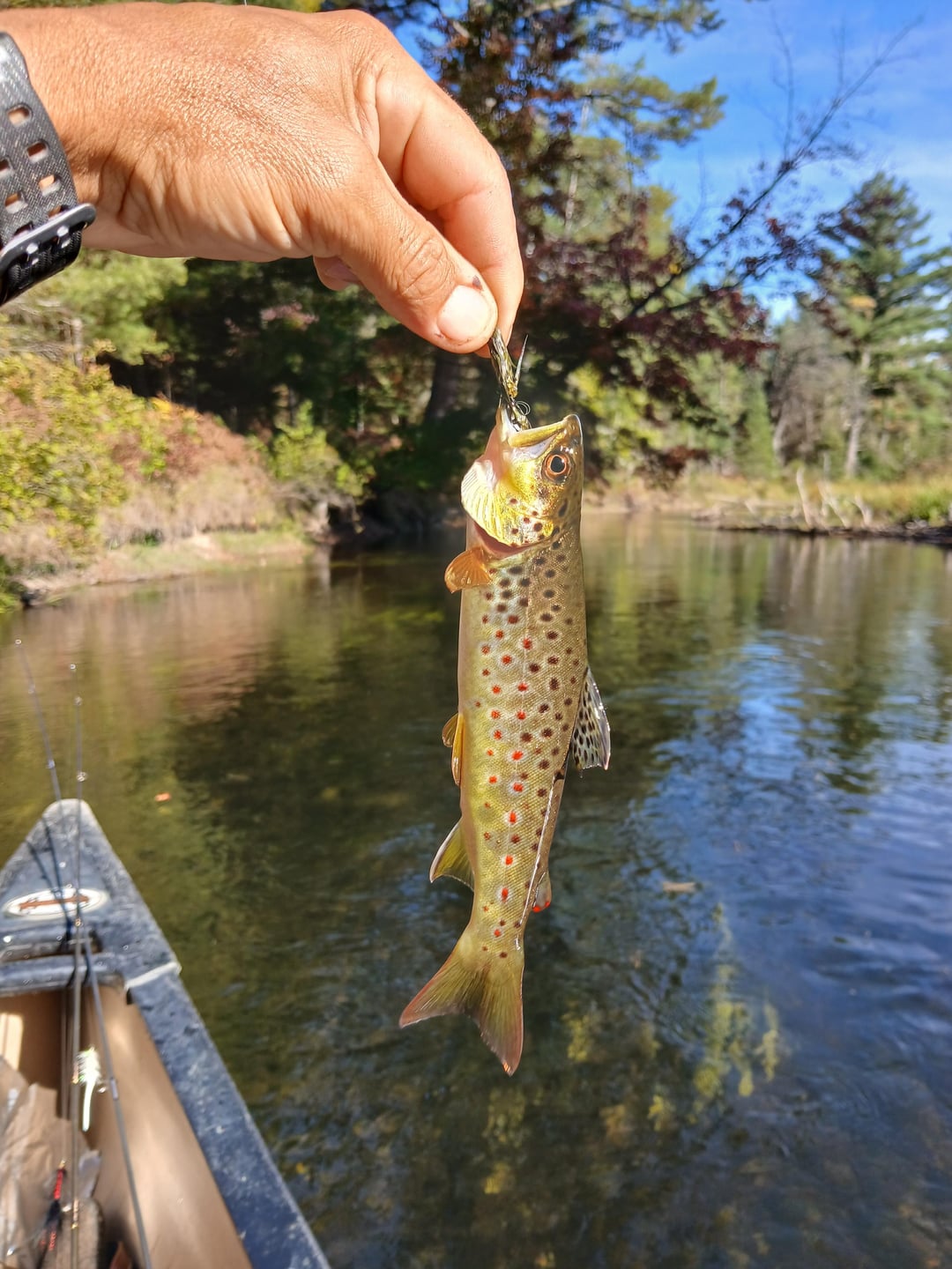 Caught 8 brookies from 3-10" on midges, matukas and wooly buggers with ultra light spinning rod and split shot. Caught one brown about 16" but my wet hands made my phone go crazy and didnt want to keep him in my net more than necessary. I'm brand spanking new to anything with a fly. We canoe the upper au sable every year and this year I was determined to fish and, of course, follow the regs. Been fishing for bass my whole life. Man! Is it nice fooling these beautiful fish.