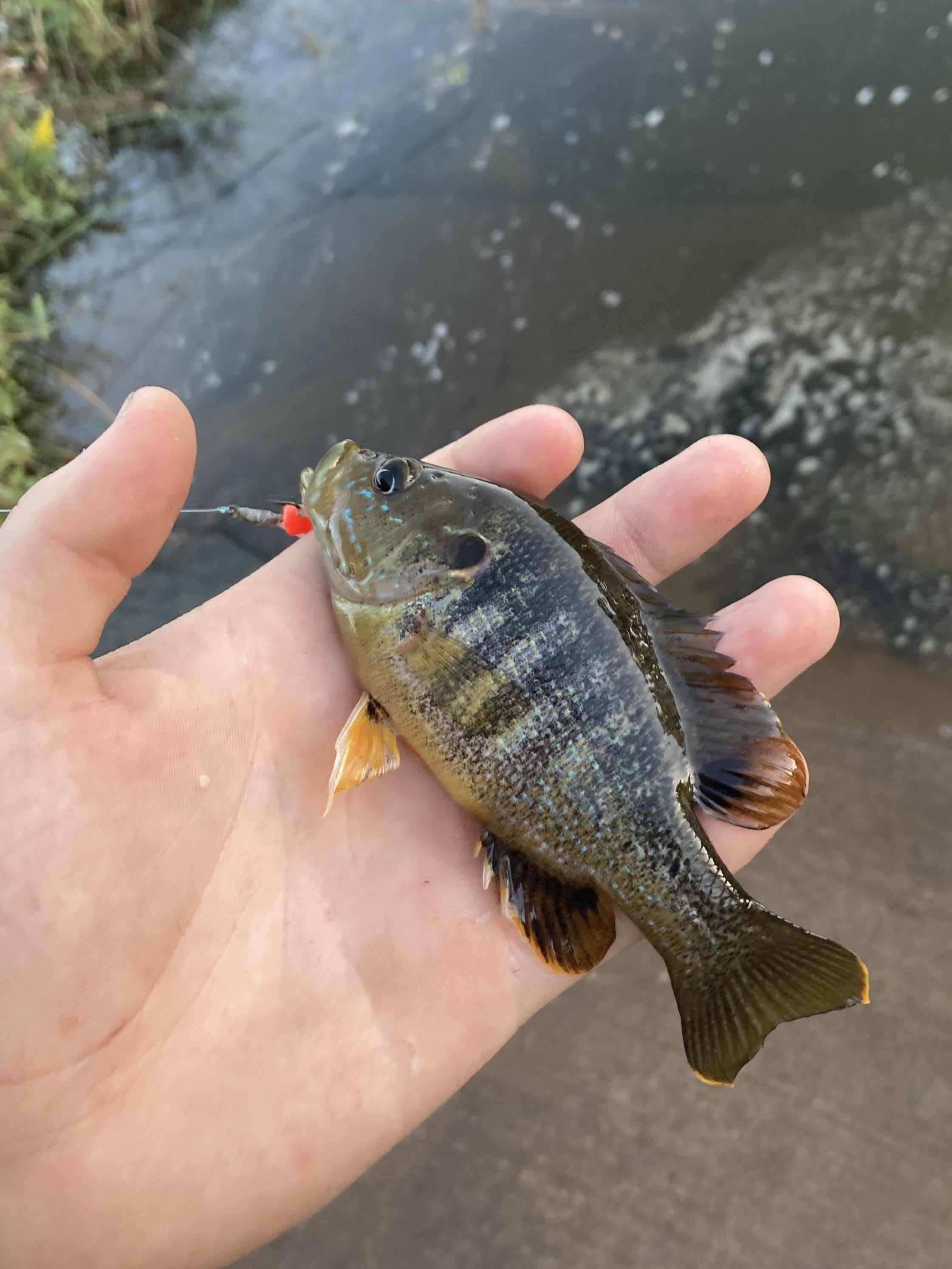Beautiful panfish on a feather fly I tied