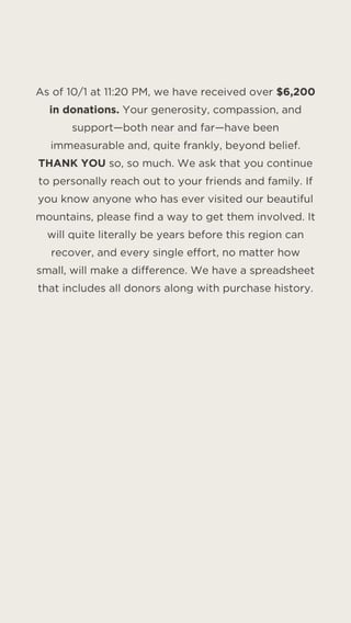 Please. Please. Please donate all you can to WNC right now. The area is a hotbed for fly fishing. It’s where I live. Our rivers are ruined. Our towns are gone. Our neighbors have perished.