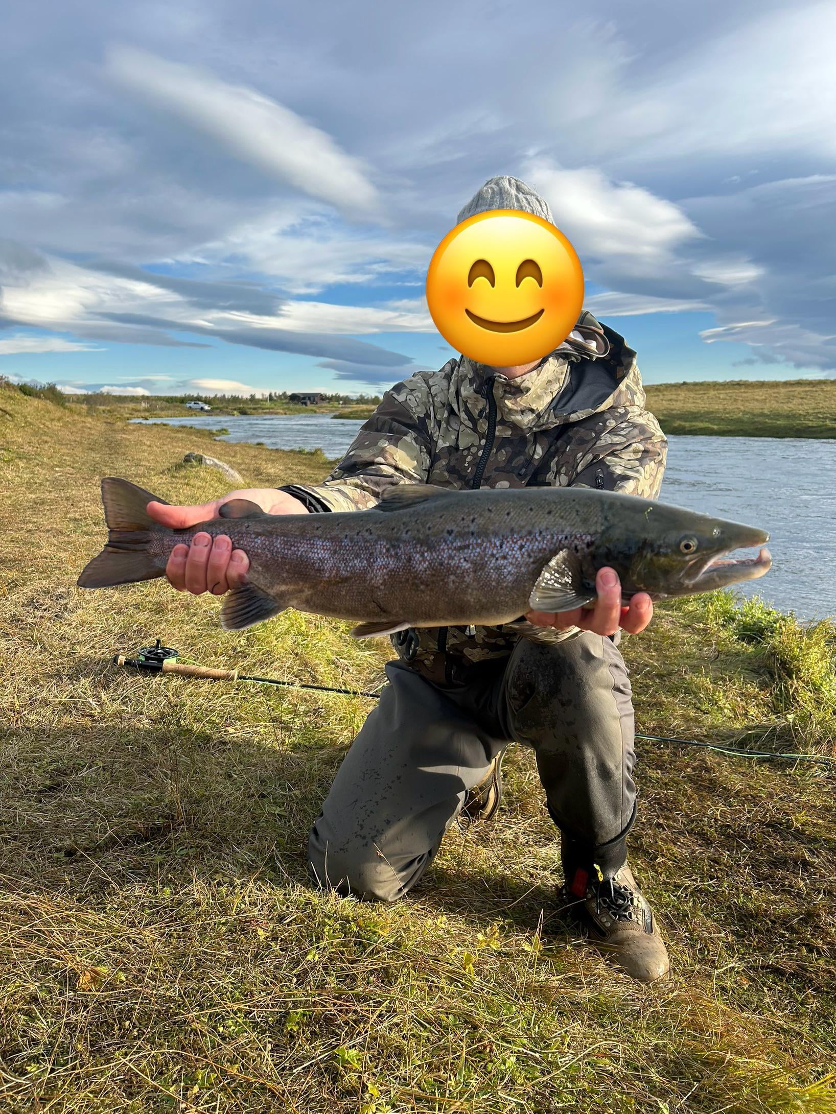 Got my first Atlantic salmon. 63 cm Got him in west Rangá, Iceland