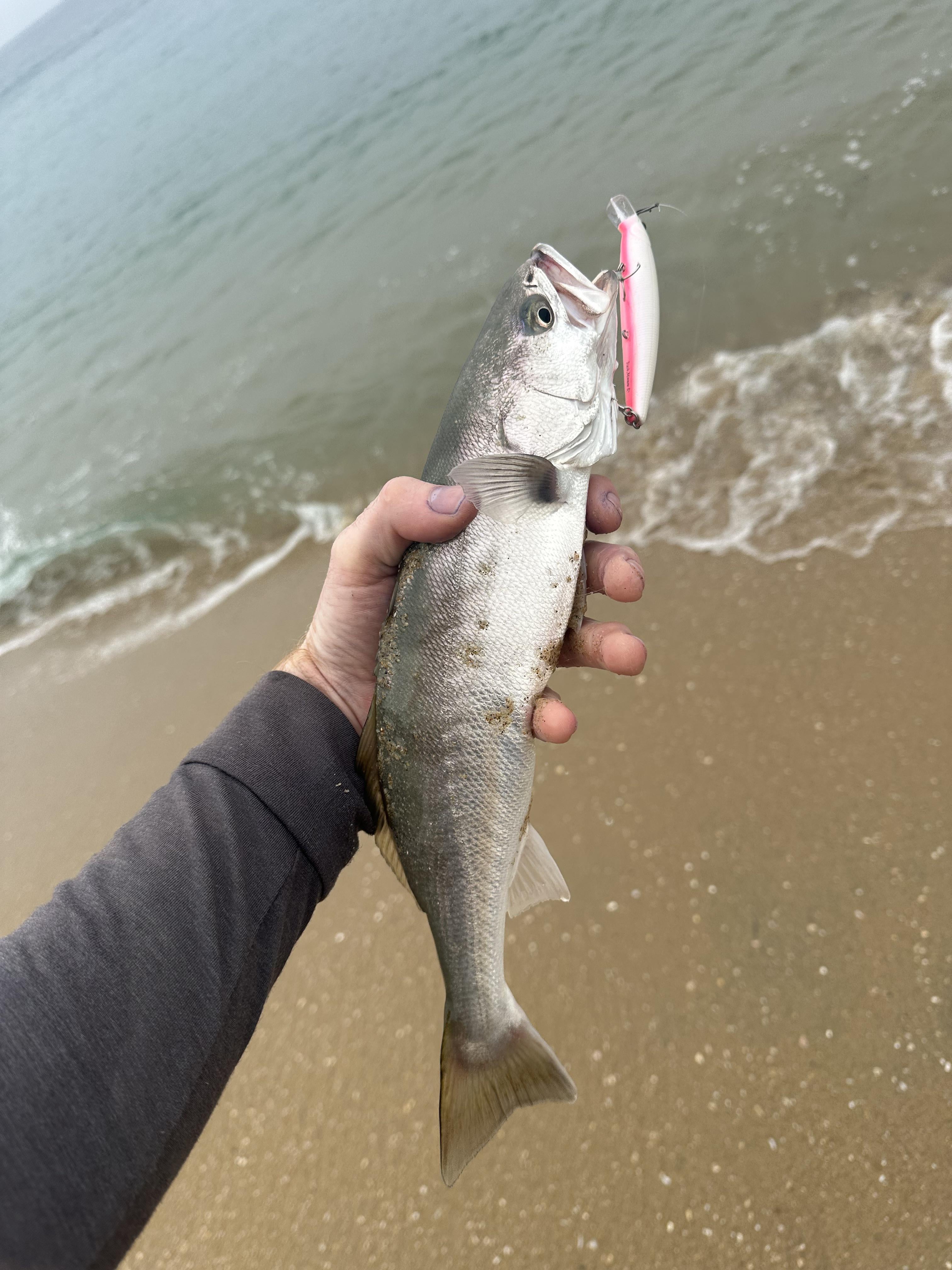 Looks like a sea bass… kinda? Croaker maybe
