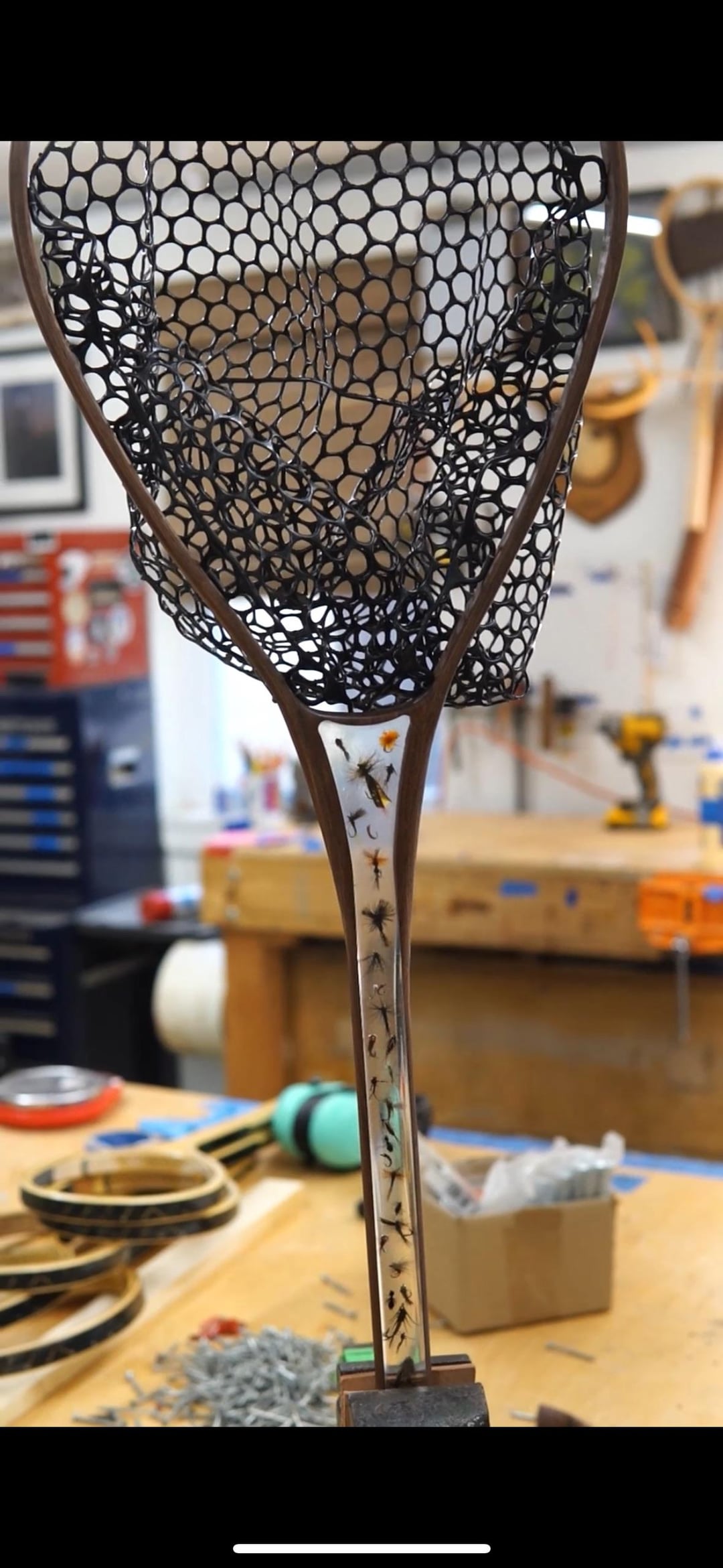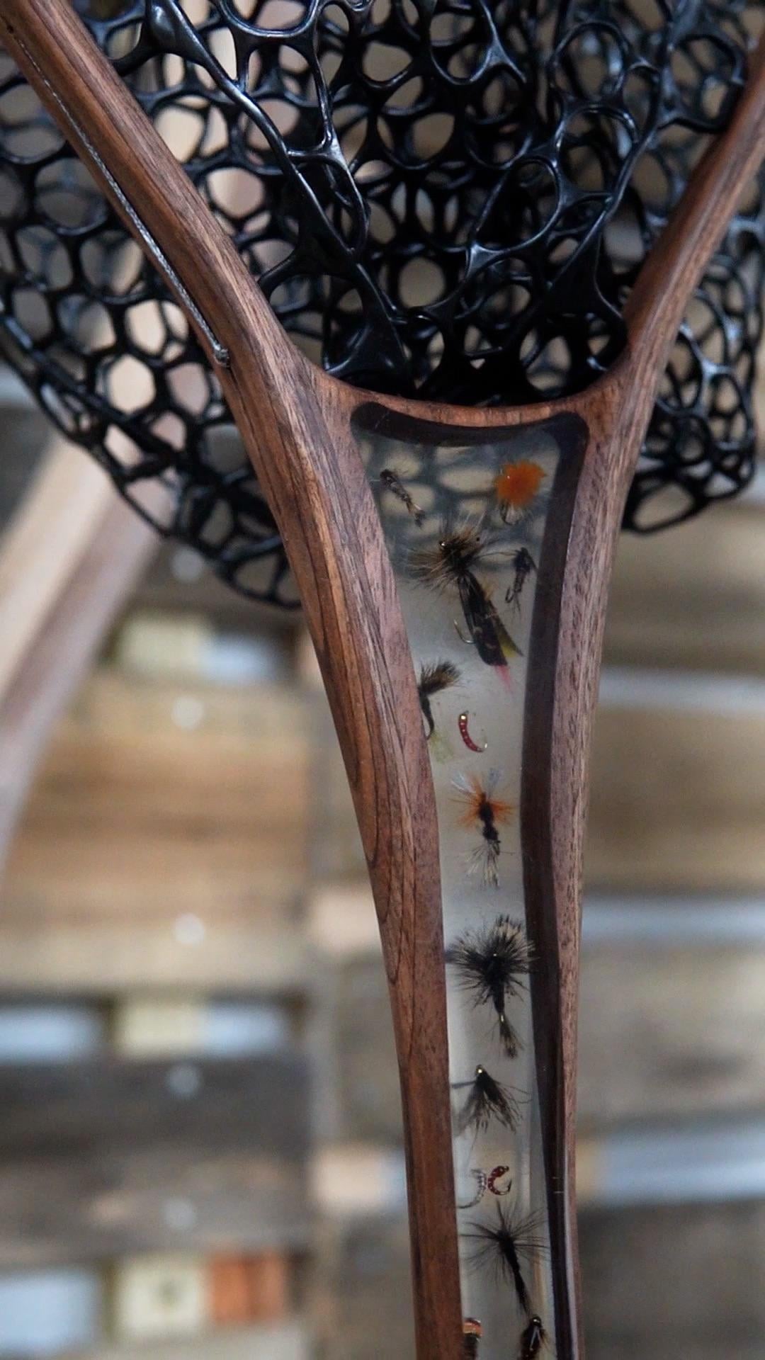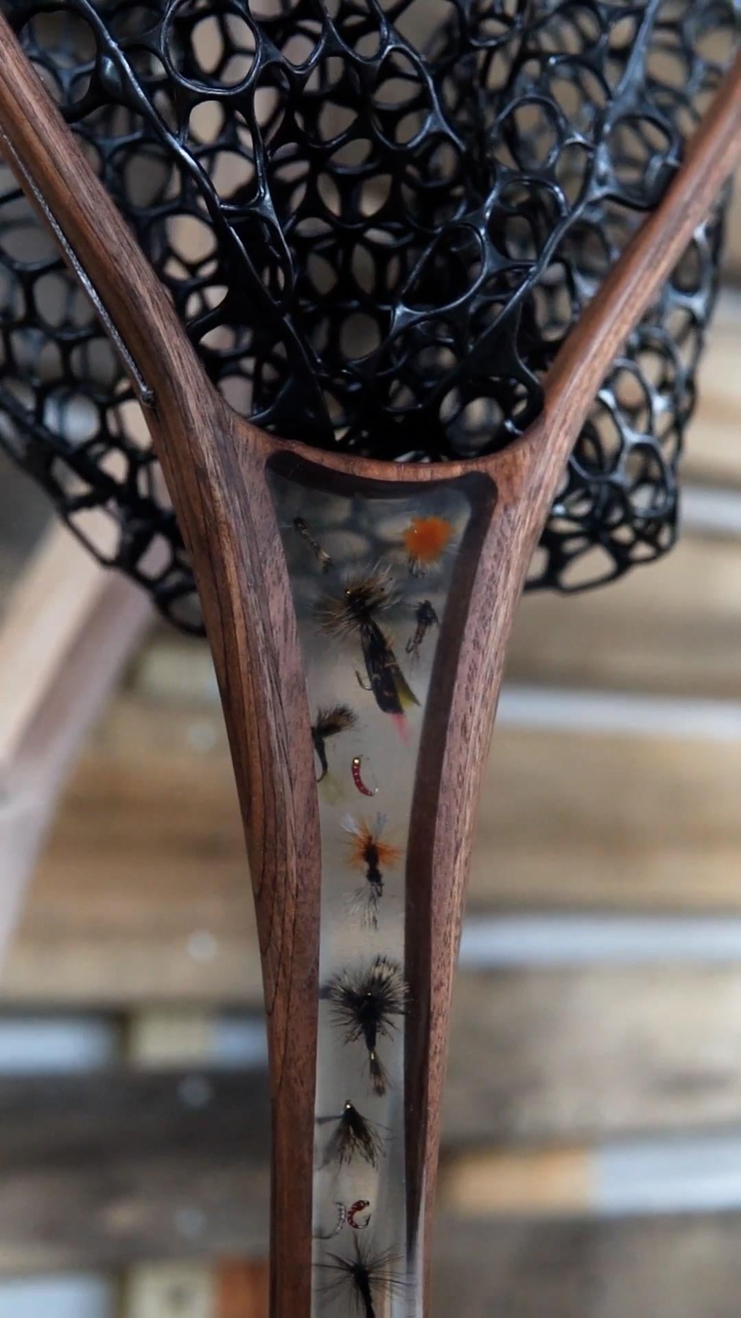 Does anyone else make nets. Love to chat. This is an all walnut frame with flys and epoxy handle. This is my Father’s Jake sized net.