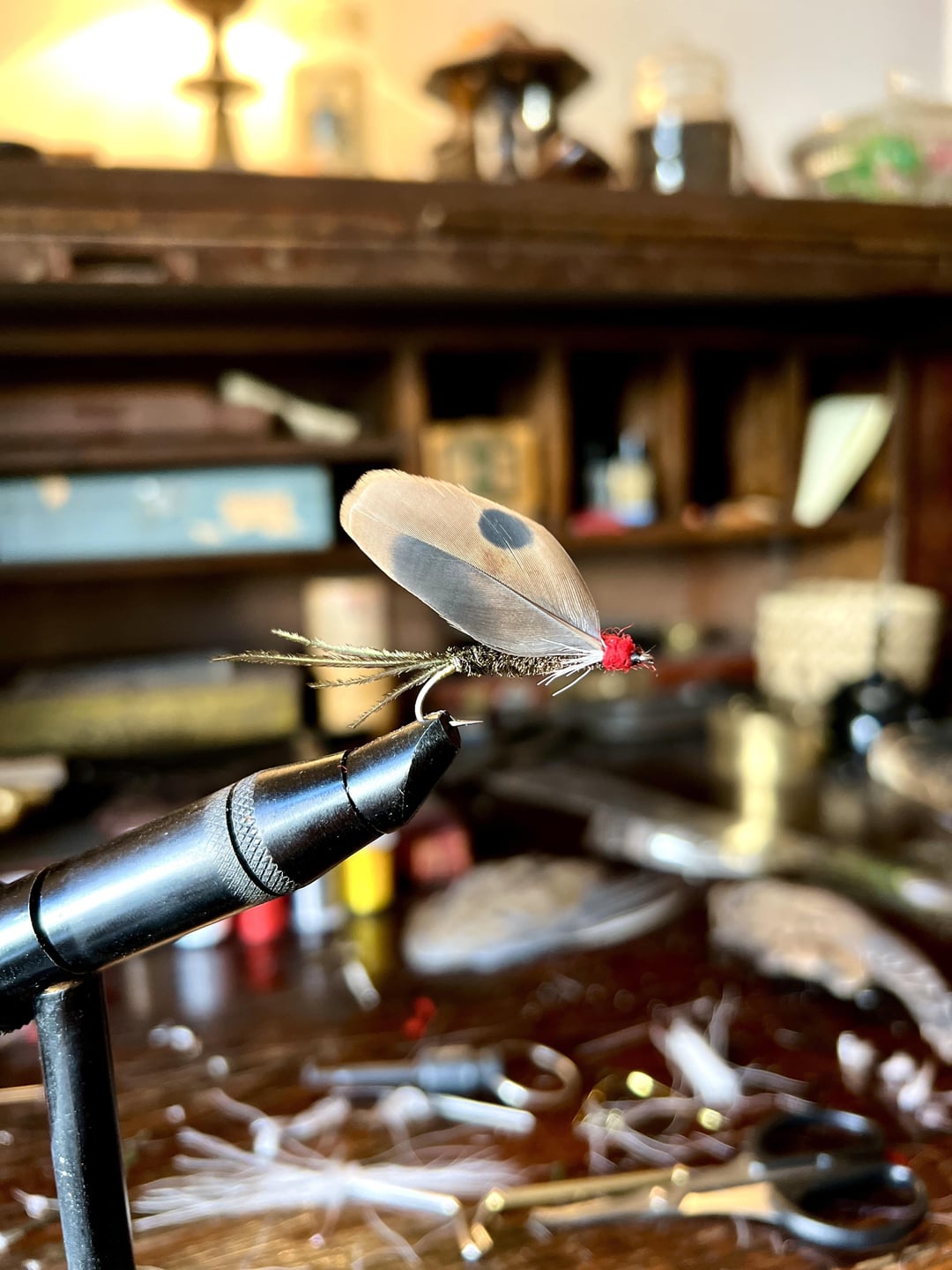 Peacock body and tail, twisted bucktail hackle, red Berlin wool, matched dove feathers I hunted myself. If you don’t own Book of the Black Bass, get it—it is possibly the most comprehensive insight into 19th century smallmouth fishing ever published.
