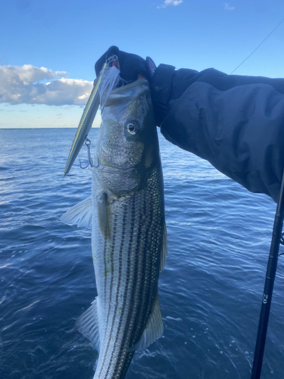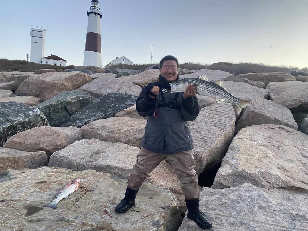 Caught like 8 striped bass in 2 hours, though I only got photos of 2 of the fish. The fish laying on the ground was caught by the guy taking the photo. I did keep the fish I’m holding up as it was slot size. This should be good eating tomorrow