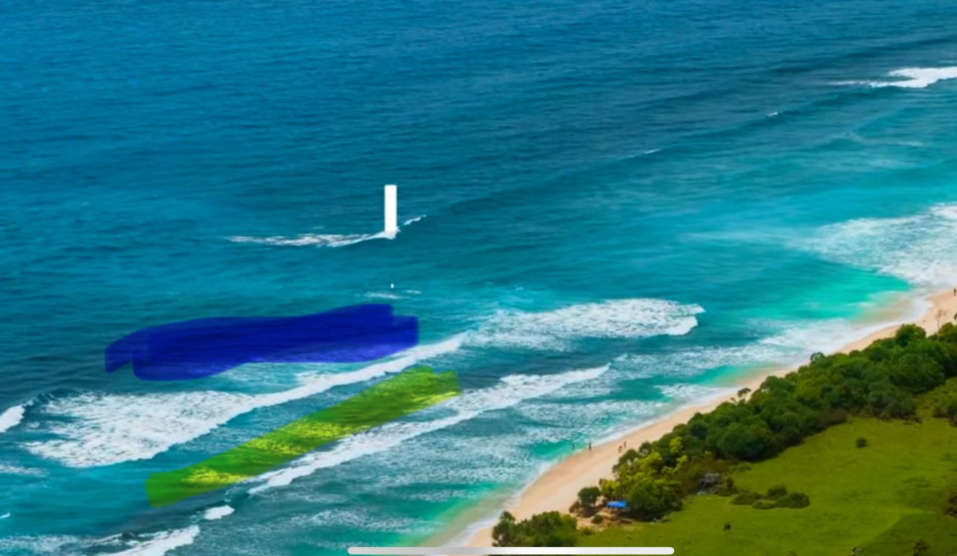 7. From the size of the people on the beach it’s a heck of a cast if you make near the blue. The right of the yellow looks like the place bait and predator fish will come in