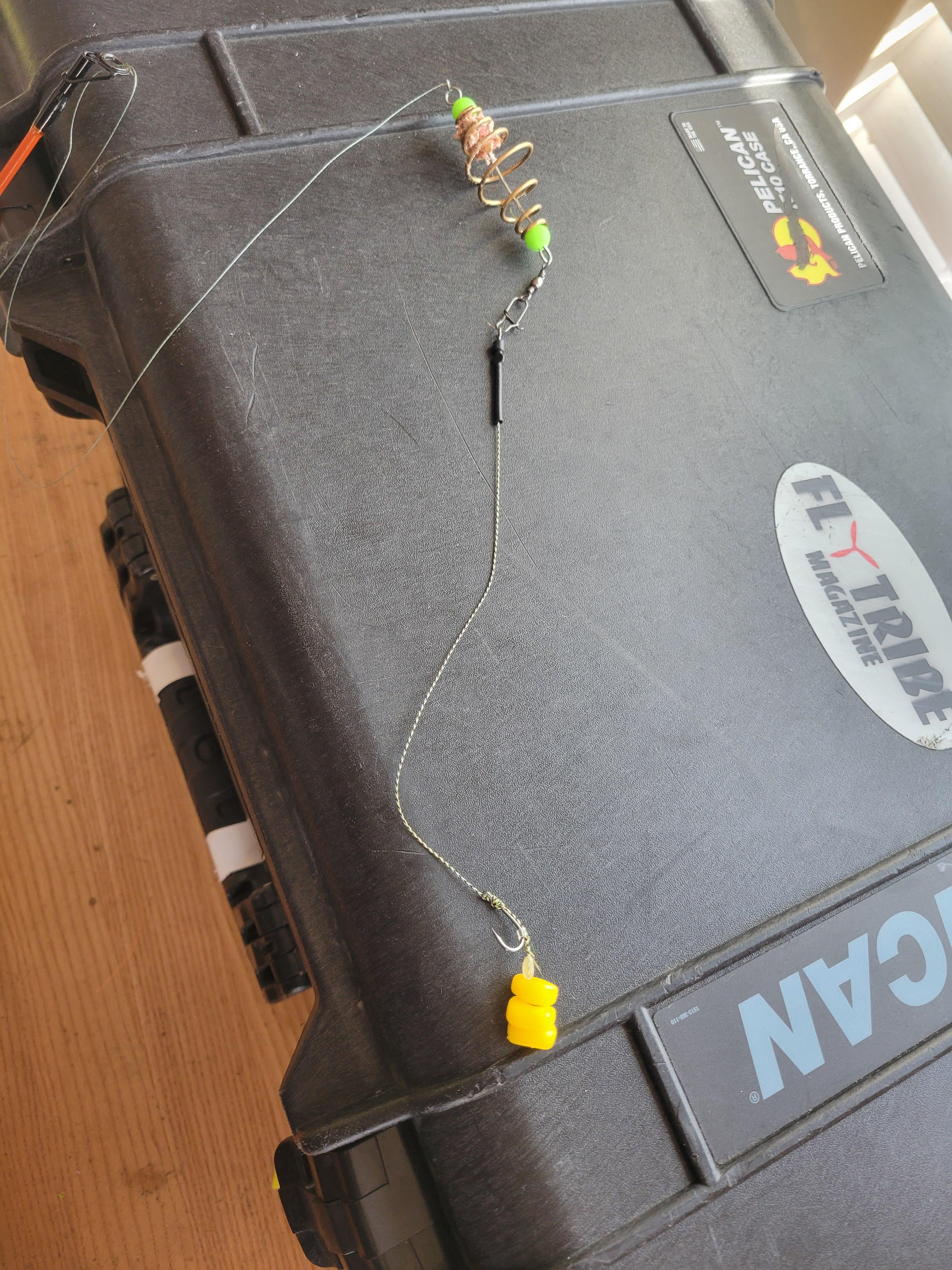 2) Remove the stupid spring feeder and just use a sliding egg sinker or no-roll