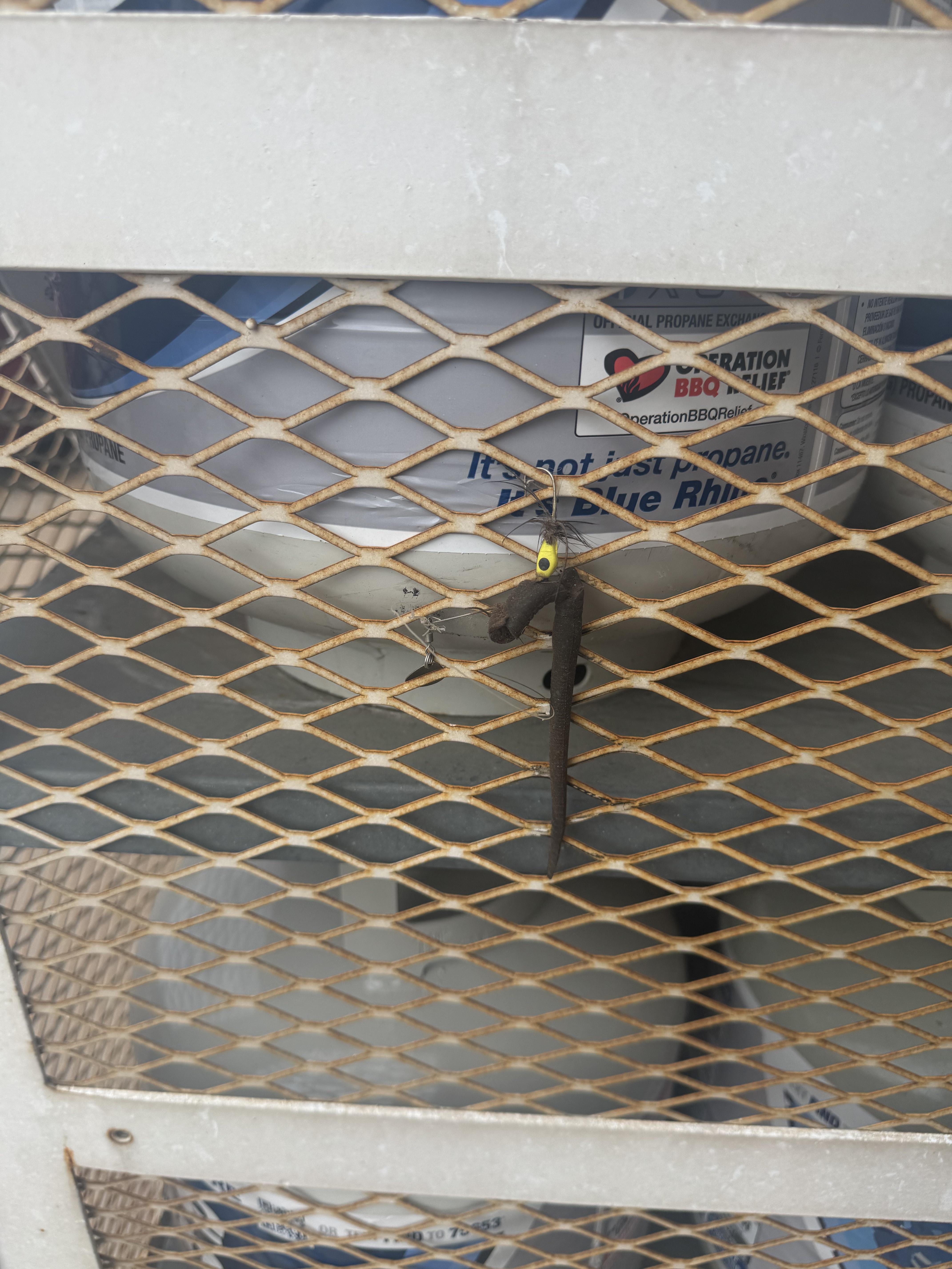 Which one of you left your lure on the cage of propane tanks outside 7-11?