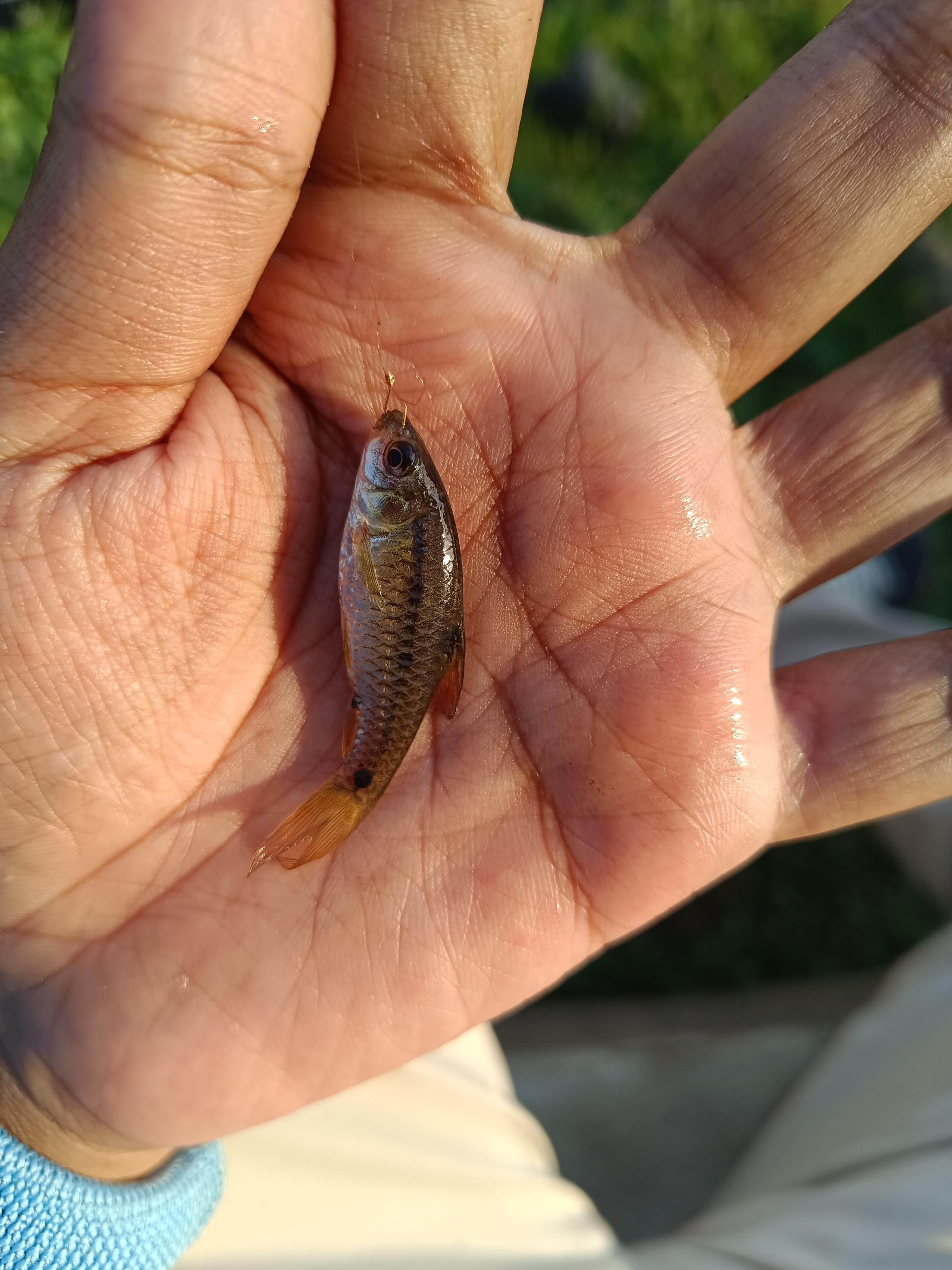 This Spotted Barb (Barbodes binotatus) was caught using 0,1 sized tanago hook and a little piece of bread as a bait