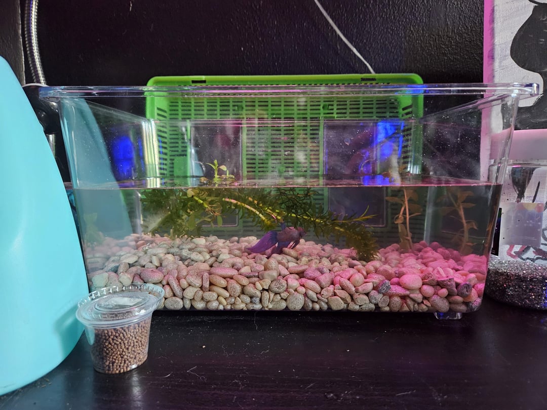 this is Gio my first ever betta fish, I got him as a gift from my mom. he is currently in the biggest plastic tub i could find on hand but I WILL BE going to get him a 5-10 gallon tank tomorrow. I know very little about fish and betta fish especially, but i want this little guy to live a long healthy and happy life. any tips you can give me? any things I should buy? anything I can do to bond with him? any response is much appreciated!
