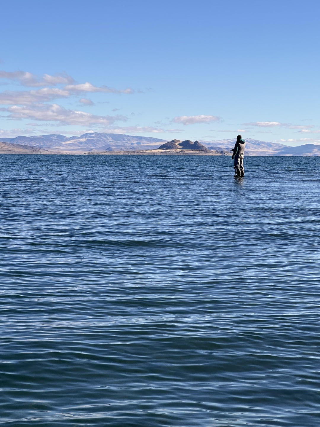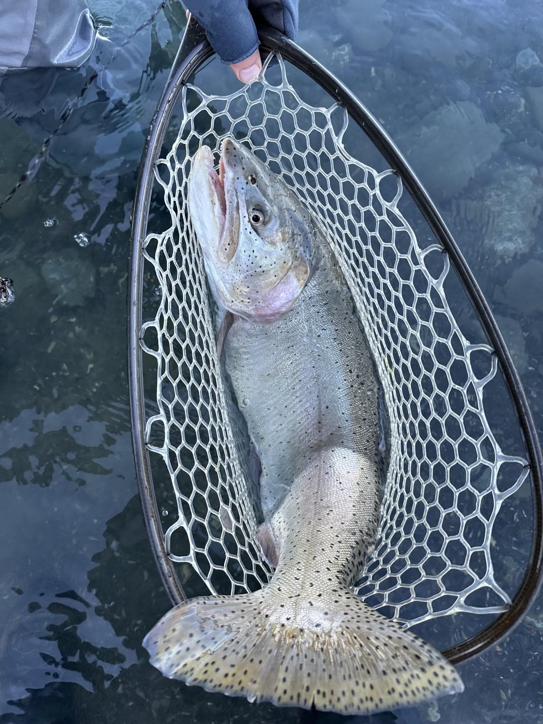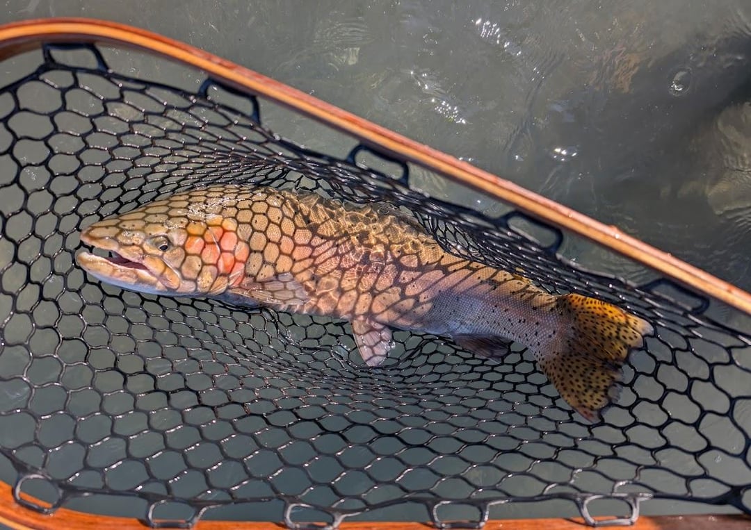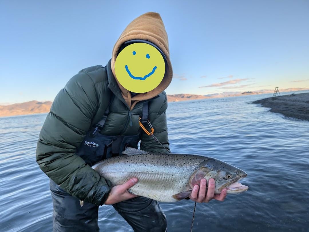A buddy and I went out to Pyramid Lake today and threw some beetles, streamers and chironomids. I unexpectedly annihilated my previous PB with this beast of a Lahontan Cutthroat who took a Pyramid Lake beetle.