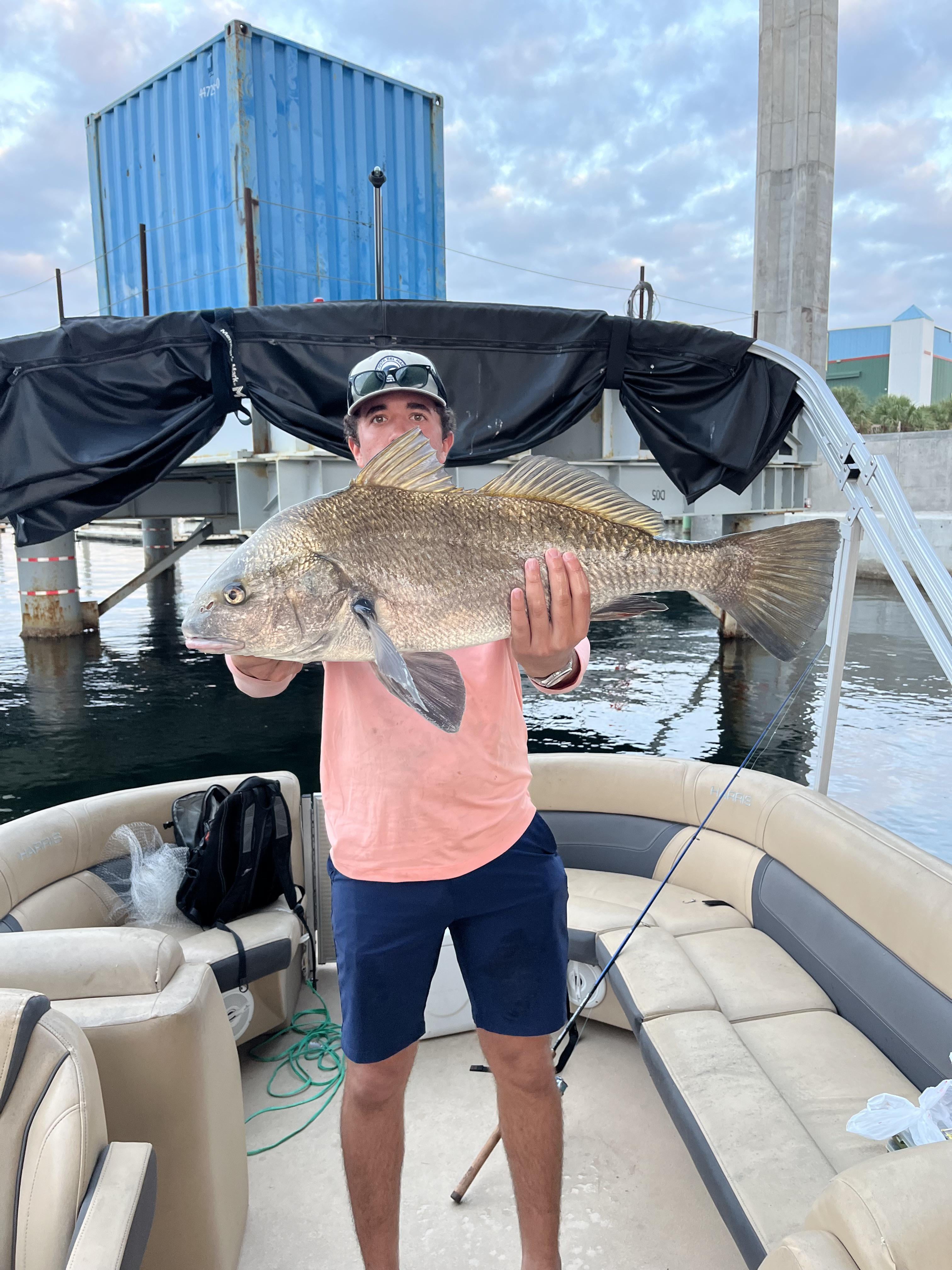 Caught him on a daiwa Procyon 3k with a tsunami carbon shield 2 with 20lb braid and 25lb mono leader using a 1/4 oz 2/0 Ned rig jig head and a big shrimp Posted by Wild_Advertising4850