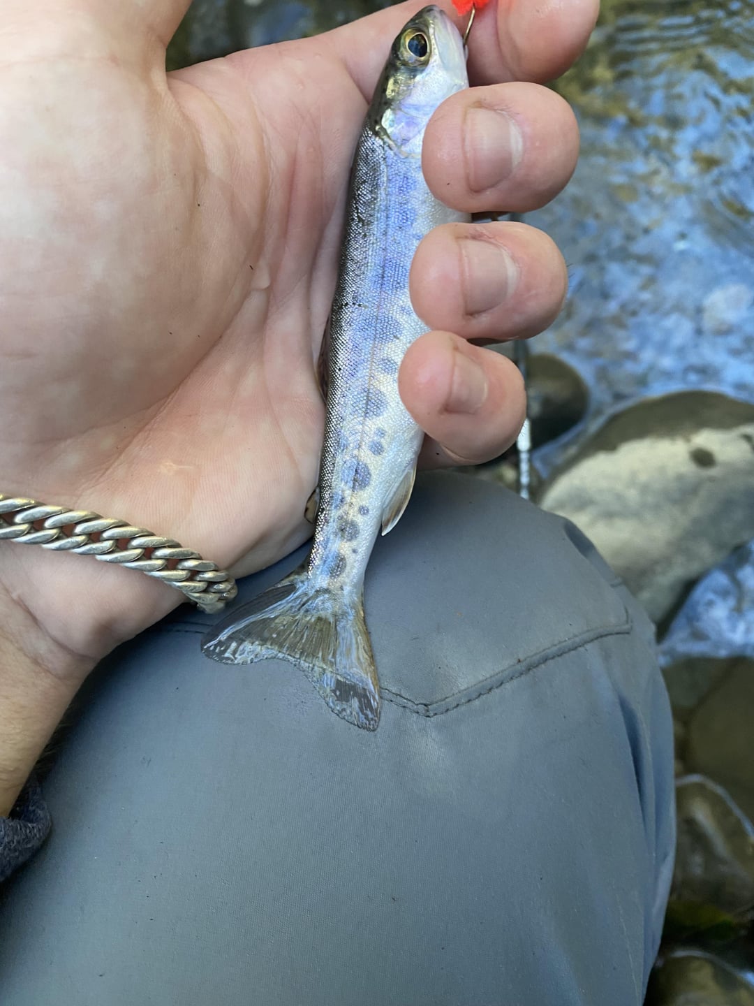 Doing some recon work on a small costal stream that I theorize has runs of steelhead but no info online. This summer there were thousands of small fish and I thought they were all trout but now I’m second guessing it. Caught these two today(definitely not my target) and if I had to guess the one in the net was a trout and the one in my hand was a coho(very forked tail). I’m no expert though hence why I’m looking for help. I did see two much larger fish, 15-17 inches, that were certainly fresh from the ocean. Got a good look at one and it looked more salmon than steelhead but coulda been either or. R