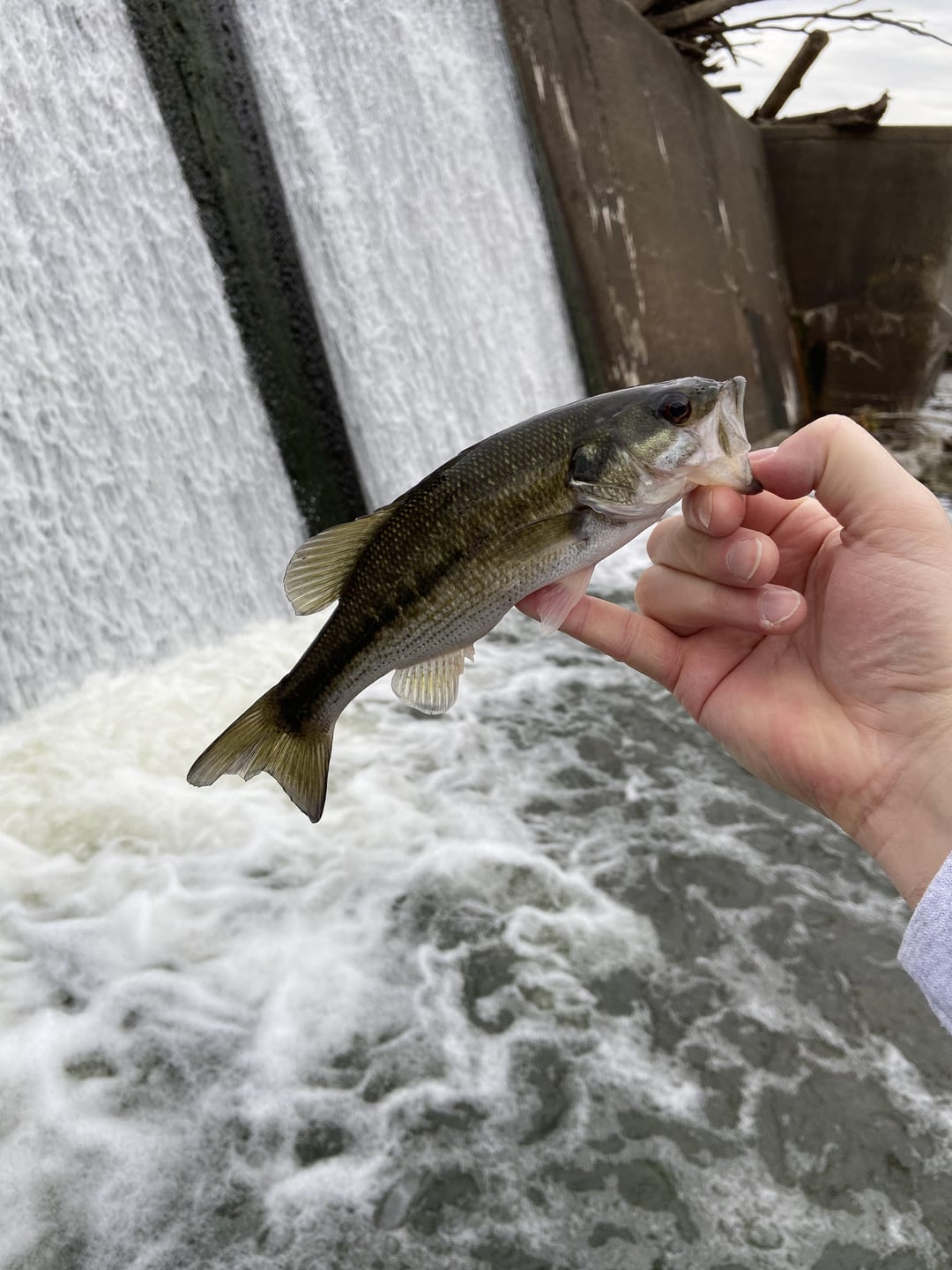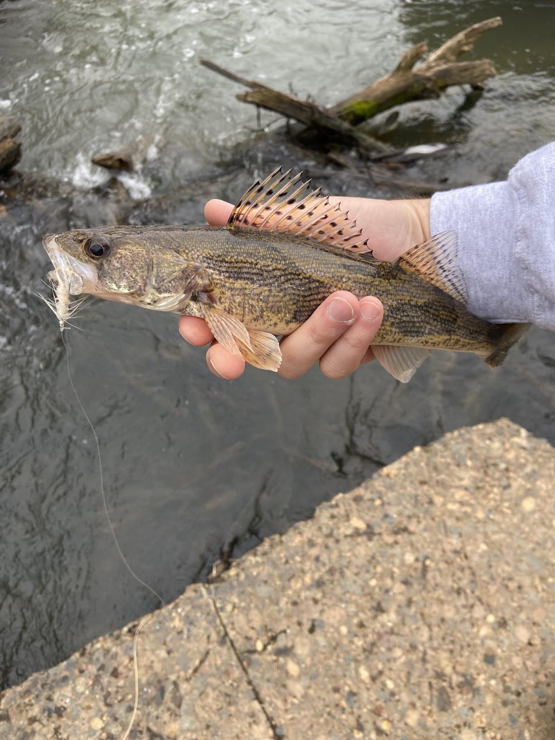 Fishing under a hydro dam spillway on the Ohio river, with a lot of hang ups & eddies. Lots of smaller bass & sauger on the white wooly bugger.