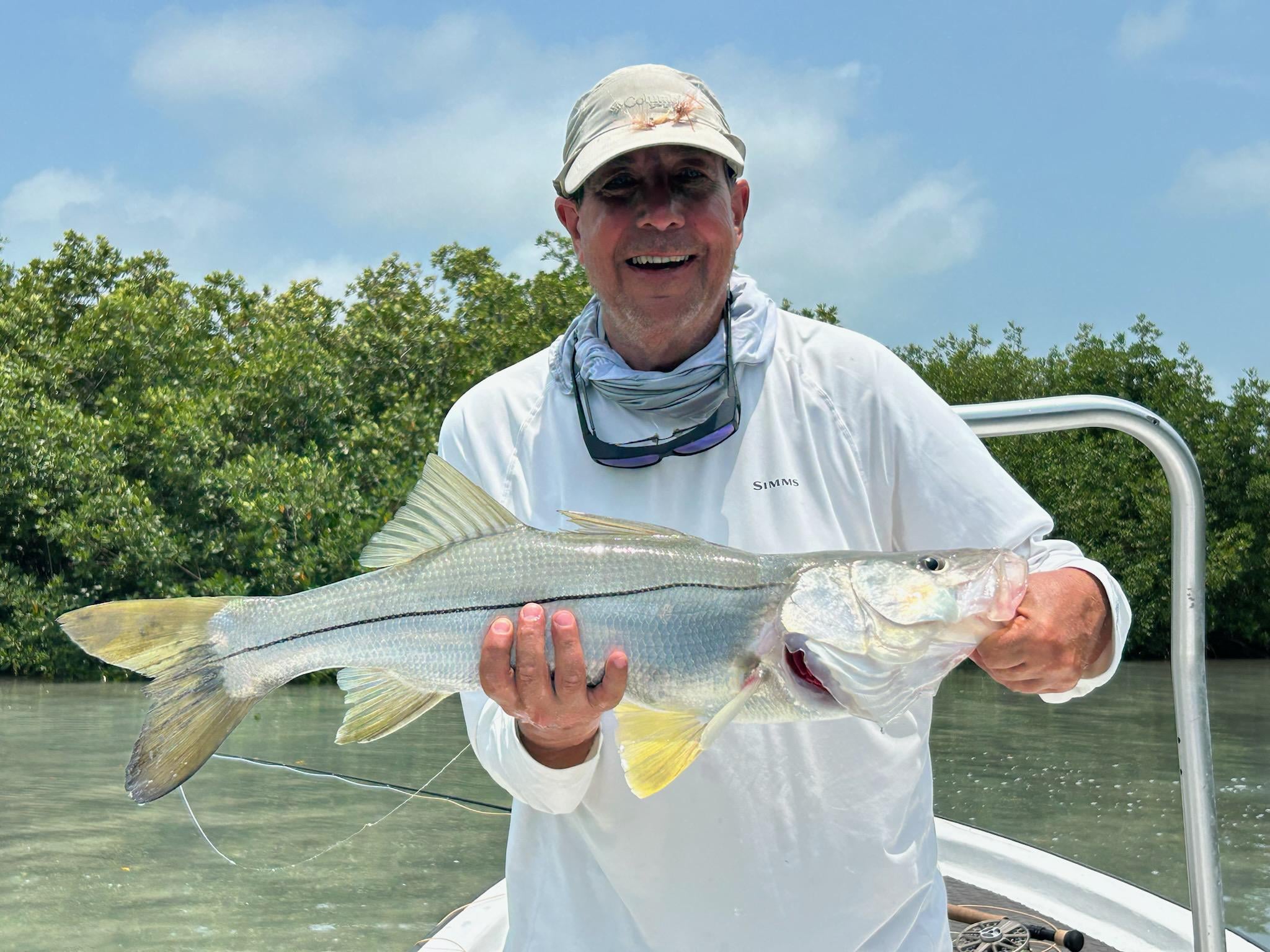 Belize Snook. Spent well over an hour trying to get the cast off to a very tight window in the Mangroves as a pod of 3-4 drifted out and in. First Snook. Ate one of my flys.