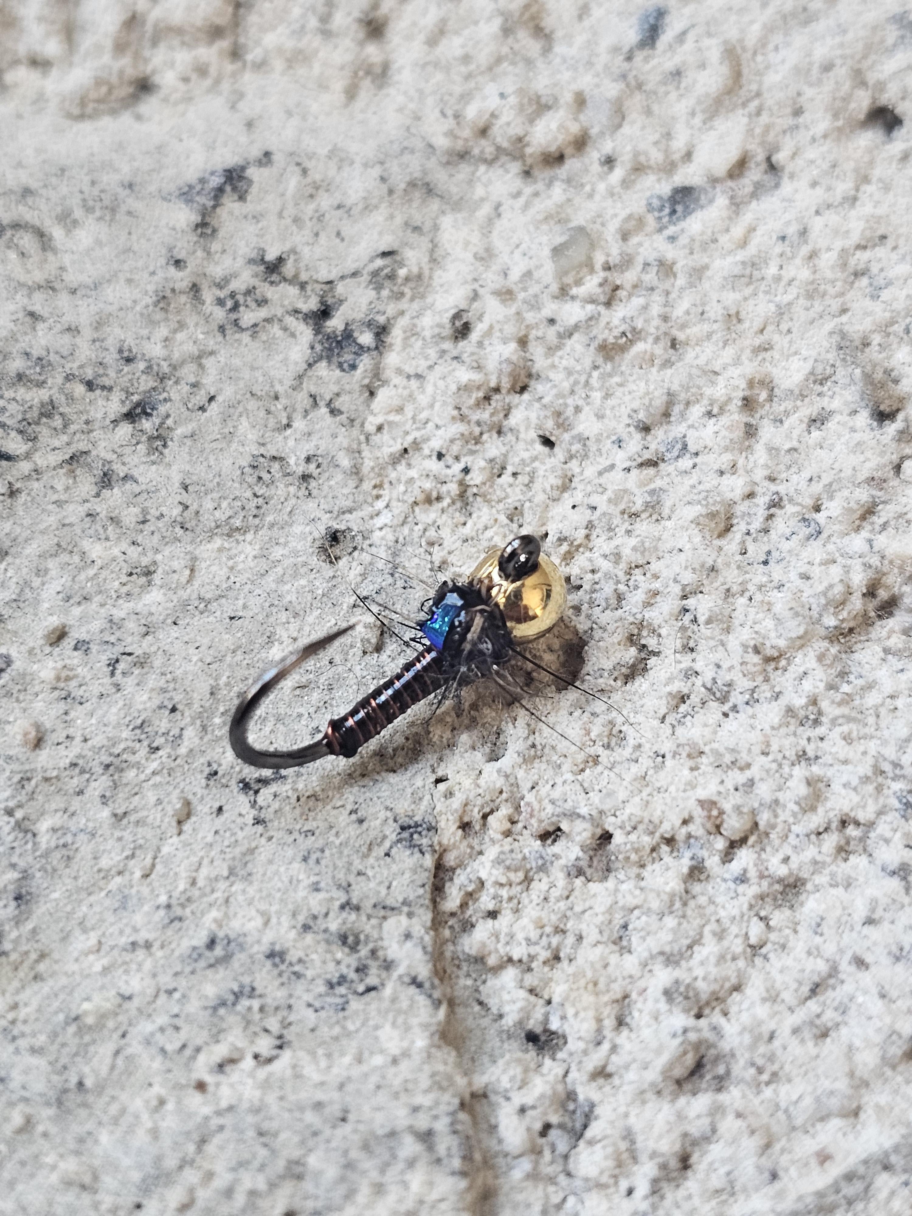 As it rides upside down I've tied this with the flashy wing case accordingly. Just a thread body with wire rib. Looks good though, IMHO. Posted by jimsnoony