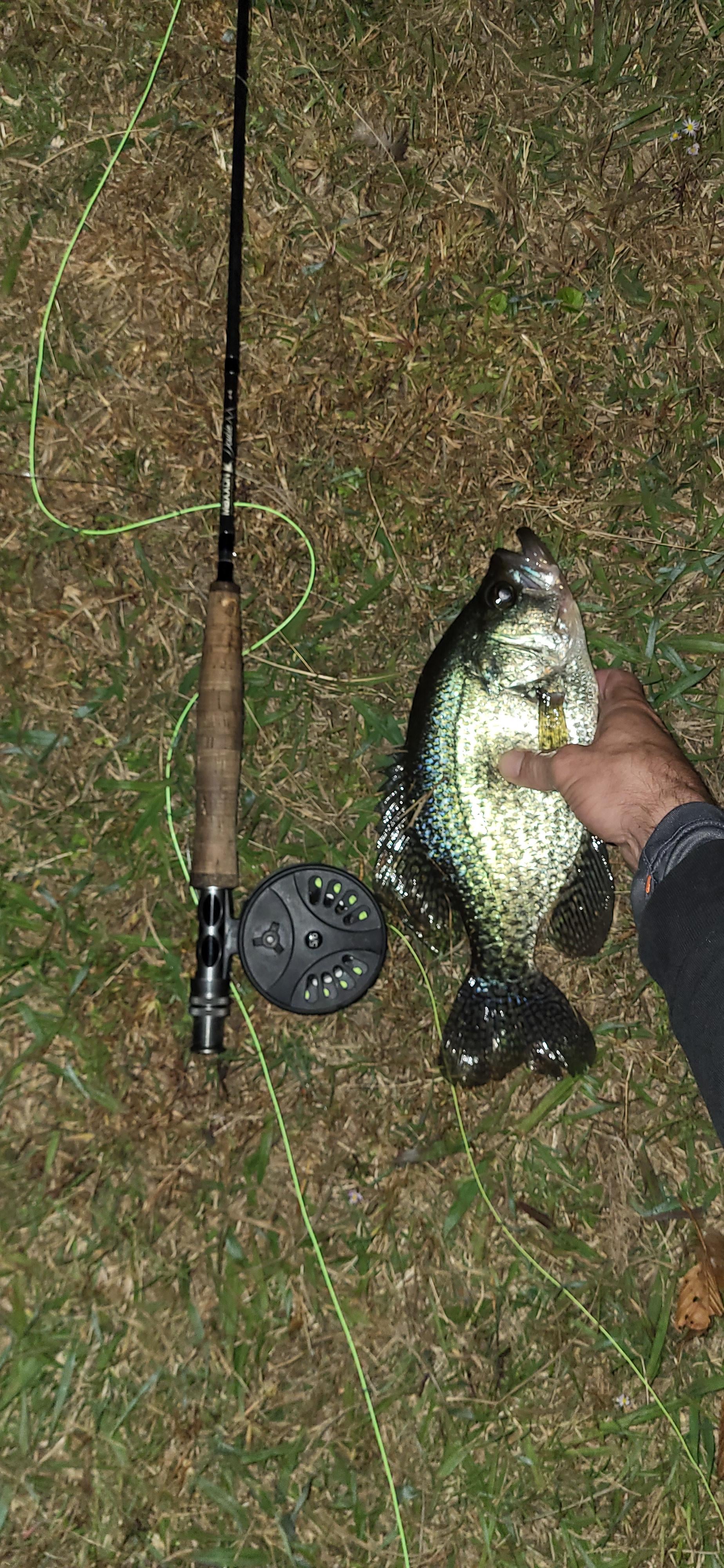 Caught this slab on a size 14 griffith's gnat I tied. Tippet snapped as I was reaching for him and I caught him by hand at the edge of the pond. Posted by Riverwolf89